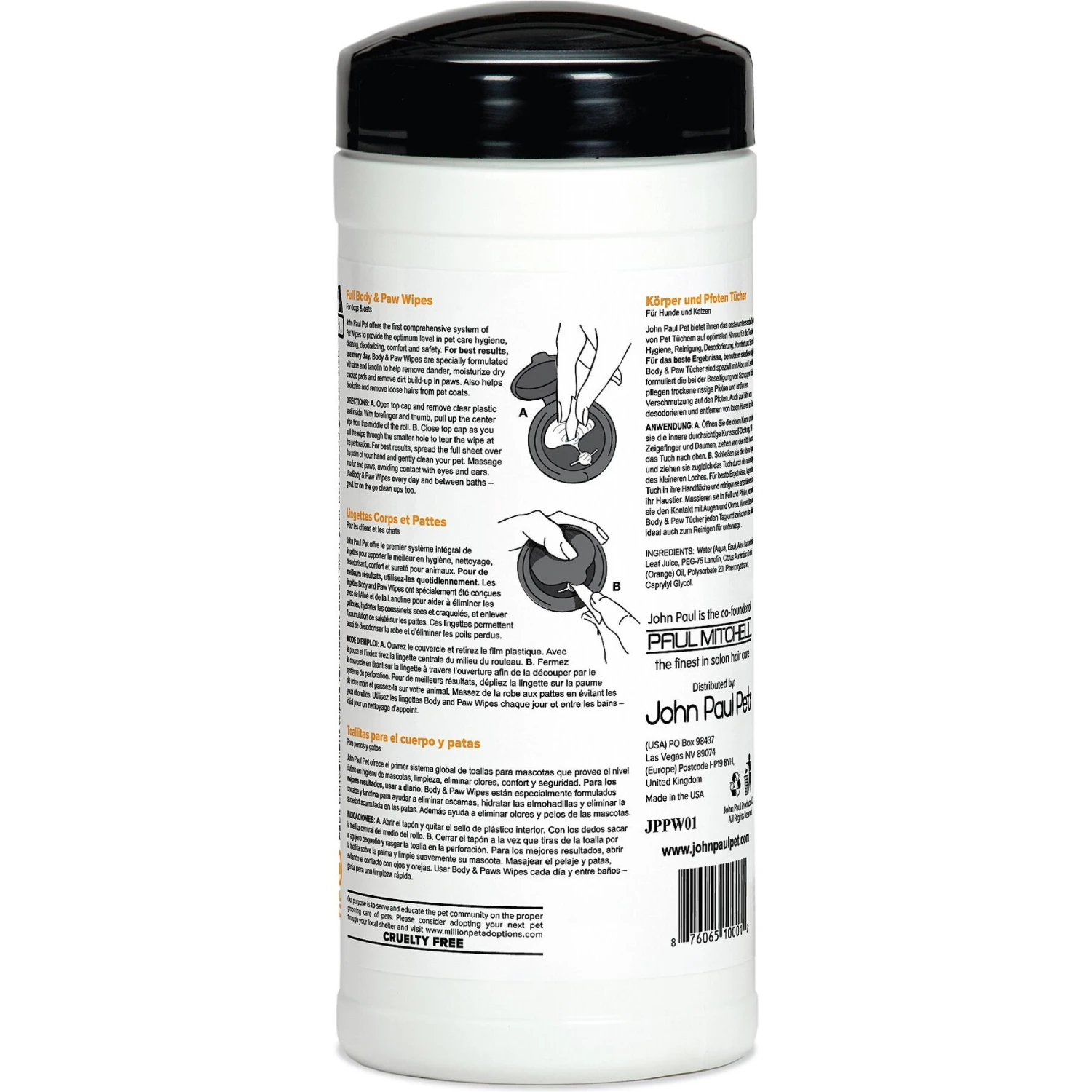 John Paul Pet Body & Paw Wipes For Dogs & Cats