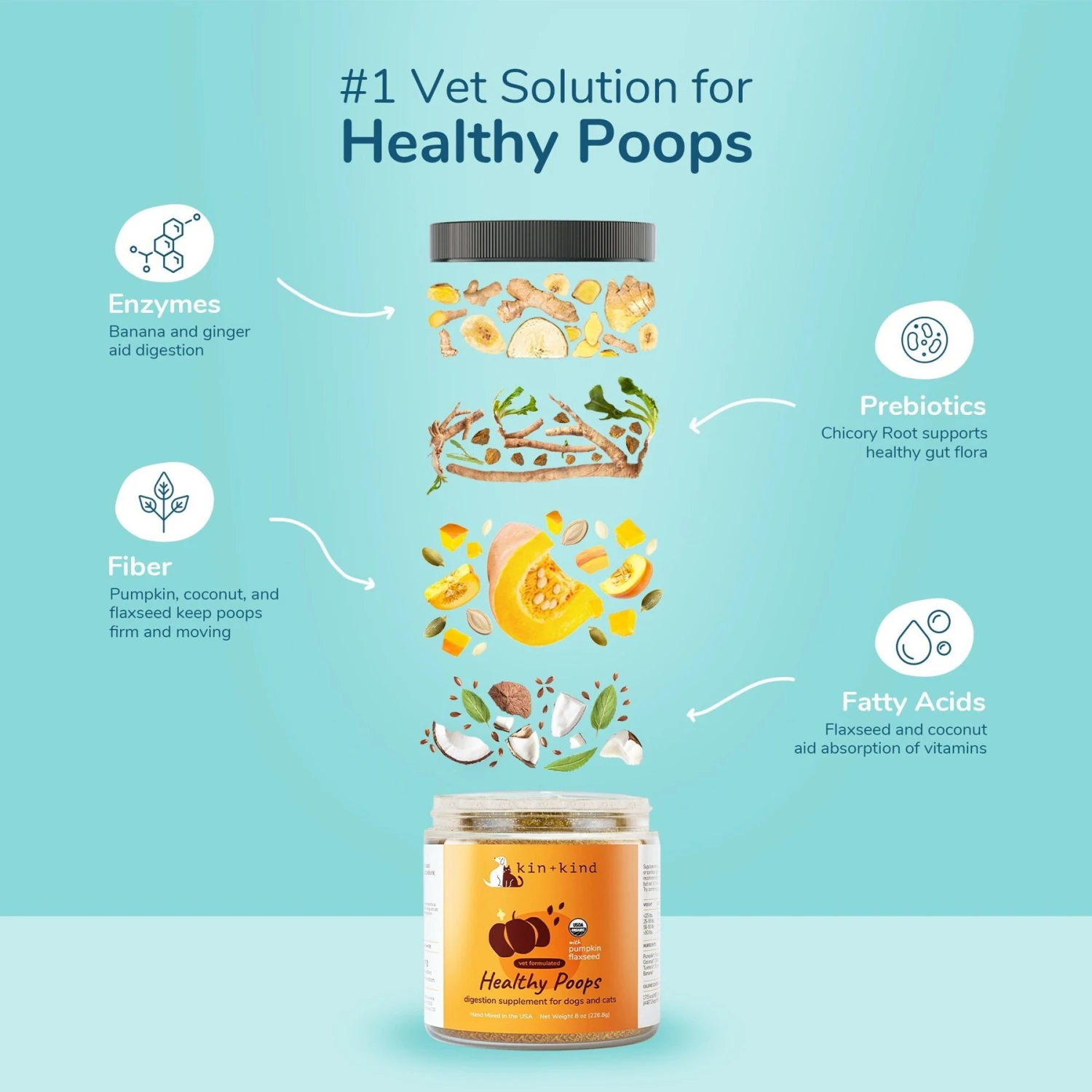 Kin+kind Organic Healthy Poops Dog & Cat Supplement
