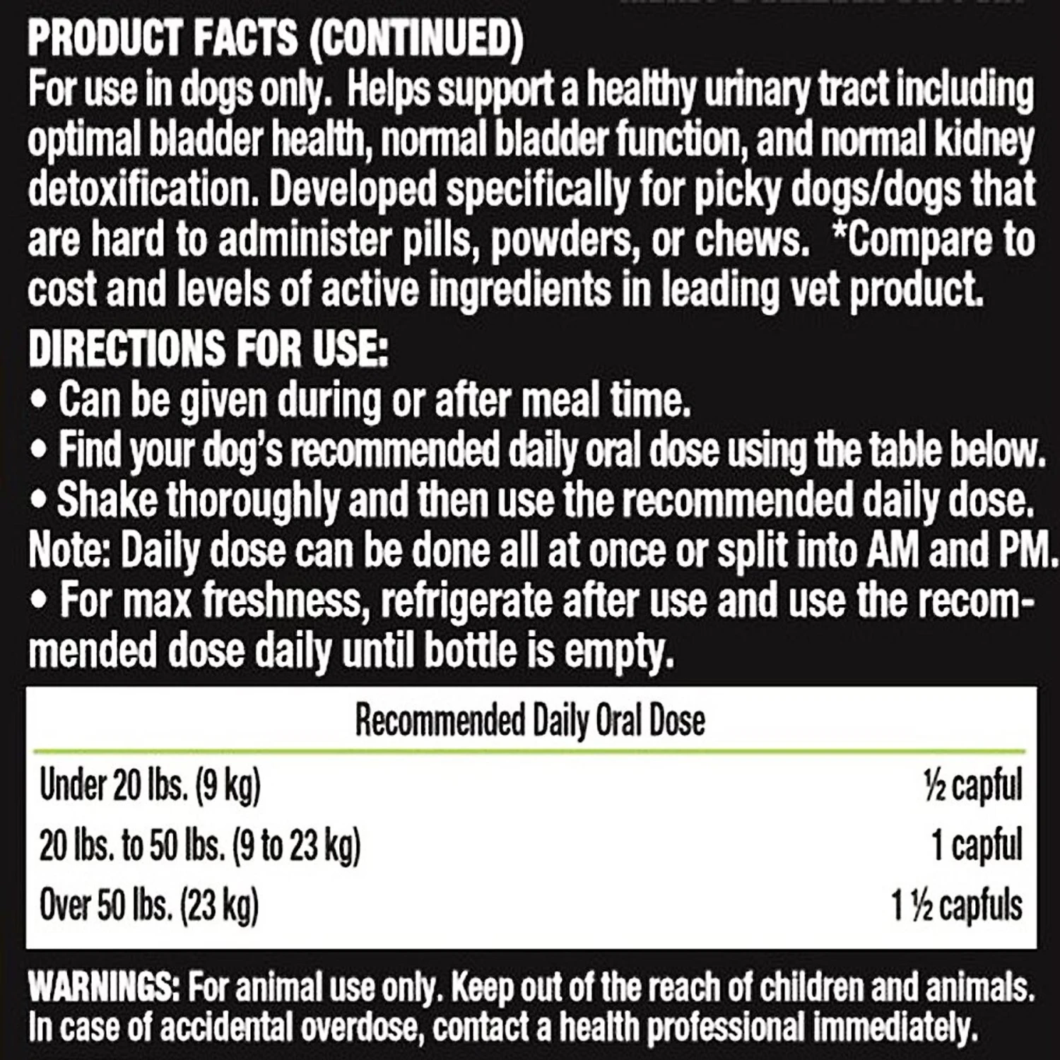 - Liquid supplement is a cinch to administer—simply add it to your pup’s dinner.