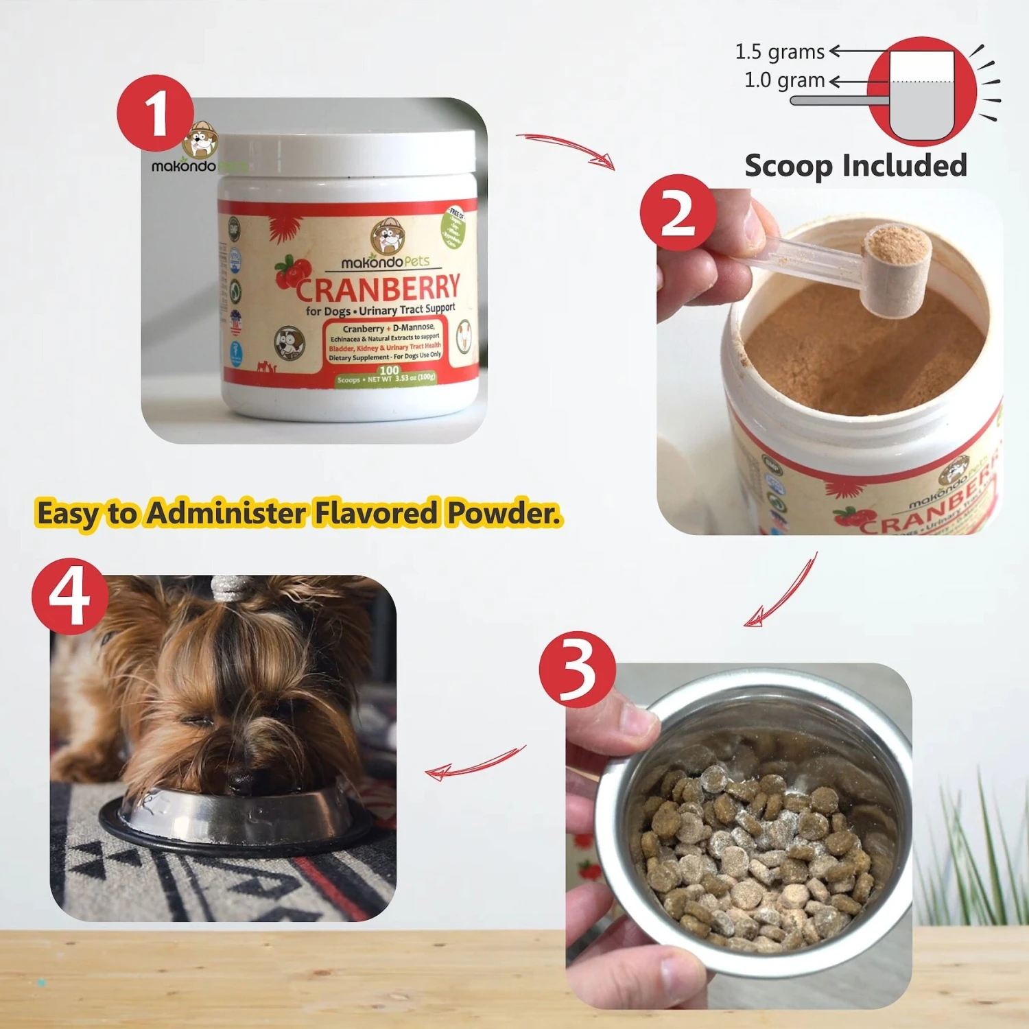 Makondo Pets Cranberry Urinary Tract Support Dog Supplement, 3.53-oz Jar