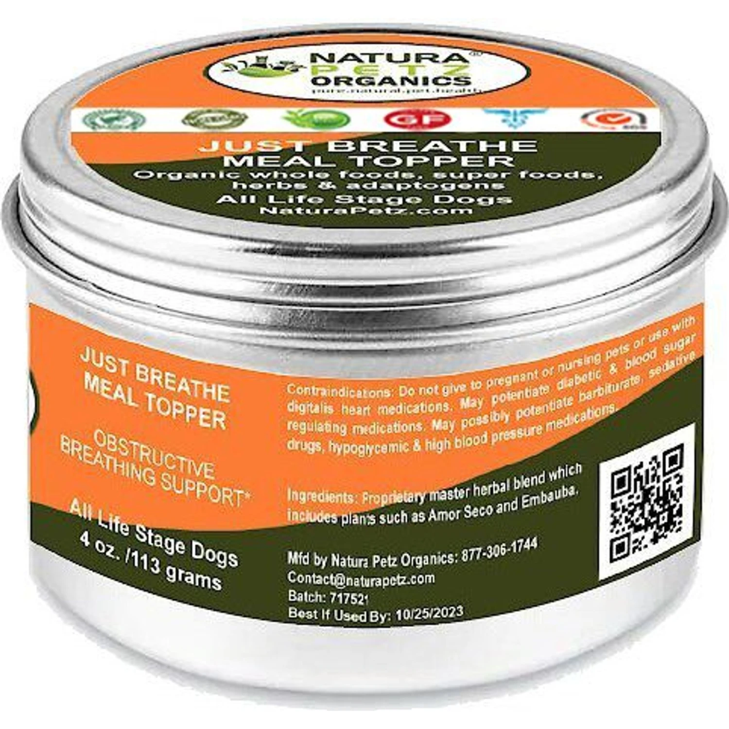 Natura Petz Organics JUST BREATHE MEAL TOPPER* Obstructive Breathing Support* Dog Supplement