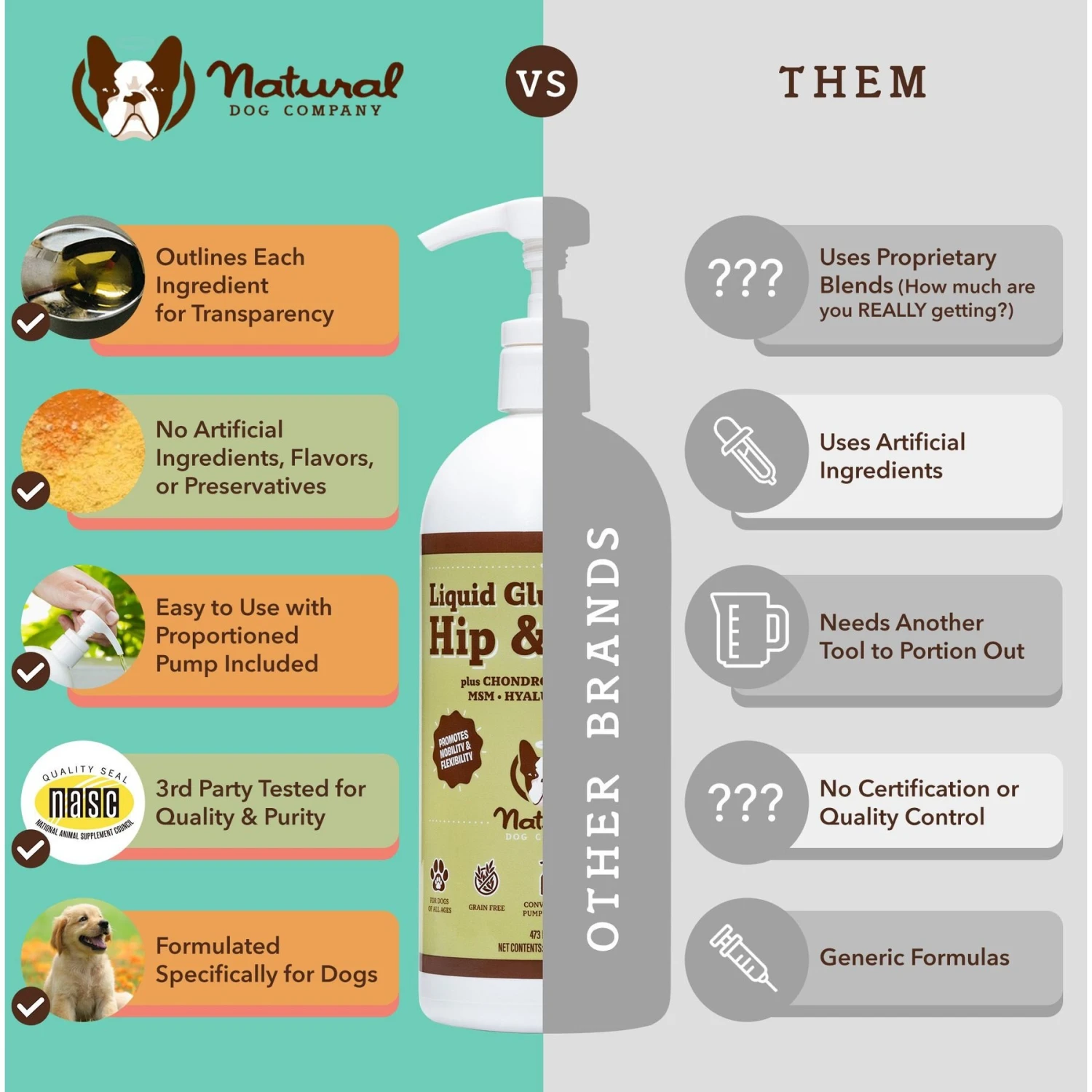 Natural Dog Company Extra Strength Joint Support Liquid Glucosamine Dog Supplement, 32-oz Bottle