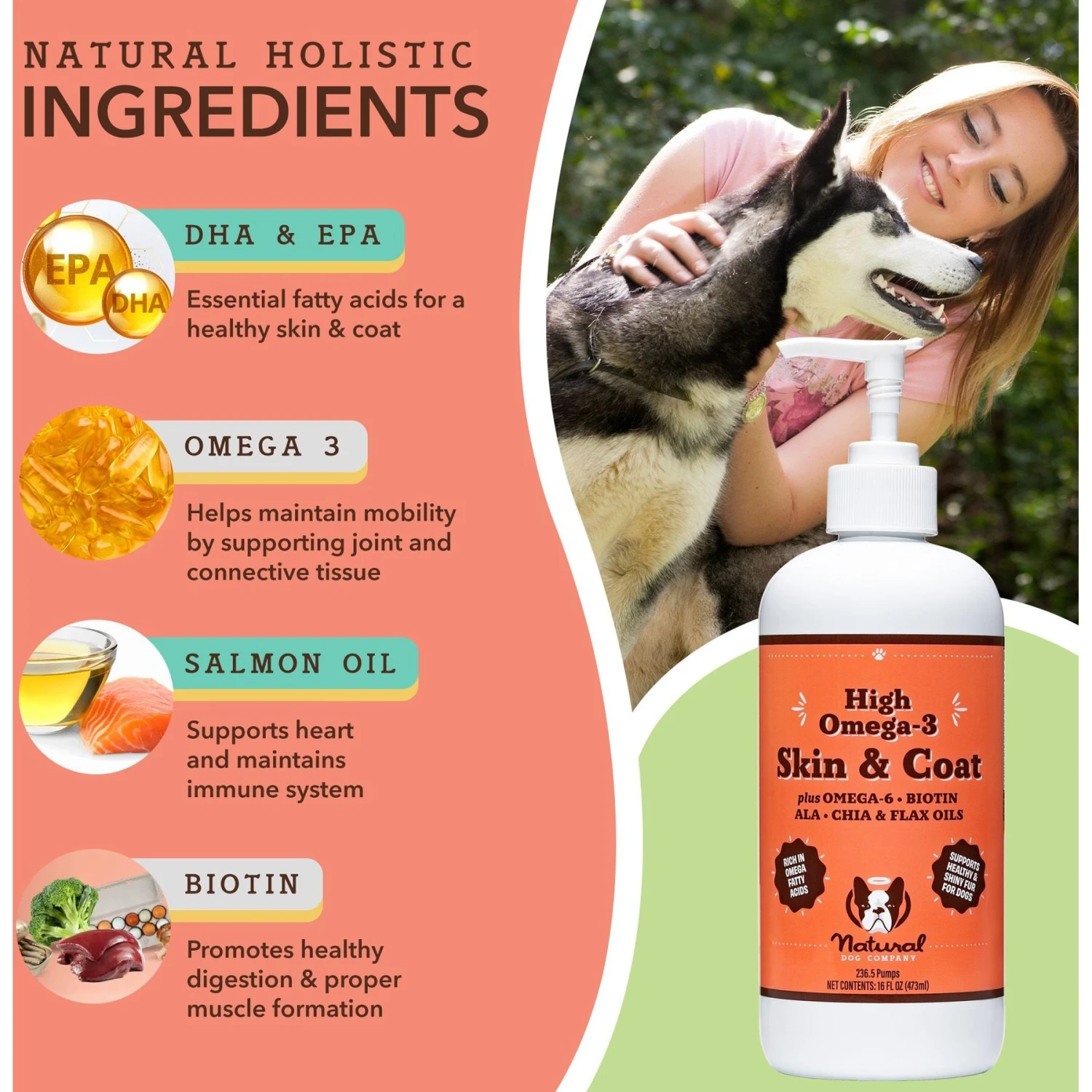 Natural Dog Company Skin & Coat Omega-3 & Omega-6 Oil Dog Supplement, 16-oz Bottle