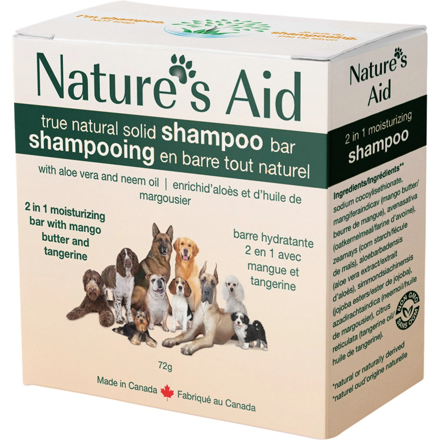 Nature’s Aid True Natural Solid 2 In 1 Mango Butter & Tangerine Dog Shampoo Bar