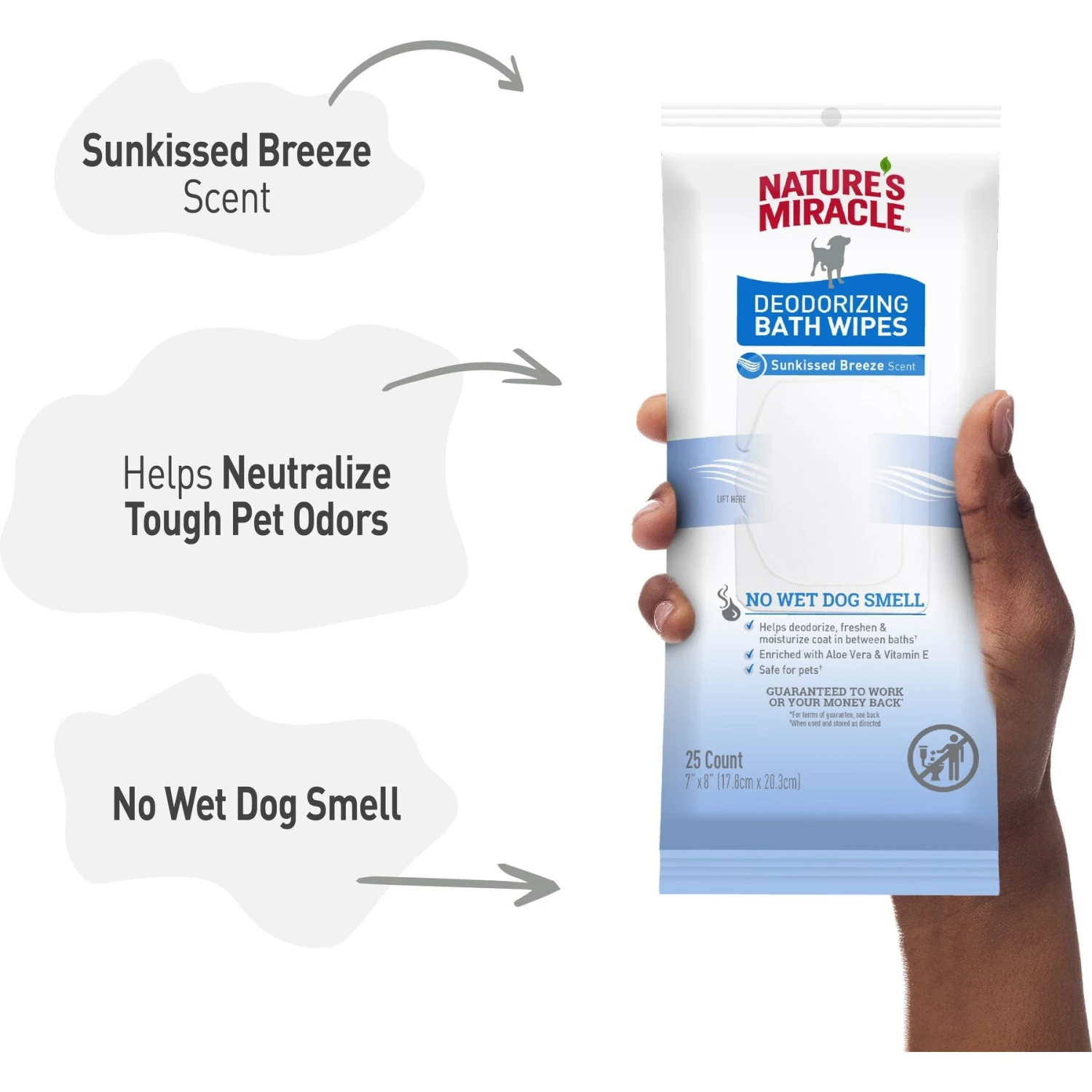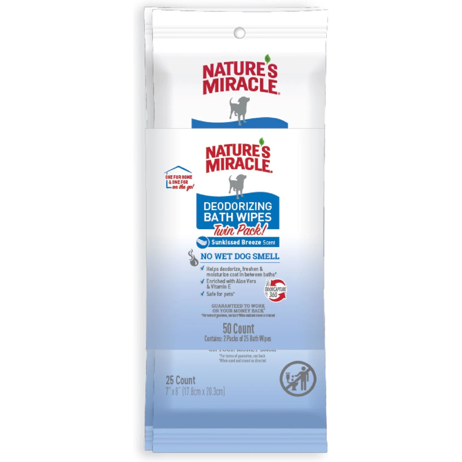 Nature’s Miracle Deodorizing Bath Sunkissed Breeze Scent Dog Wipes, 2-Pack, 50 Count