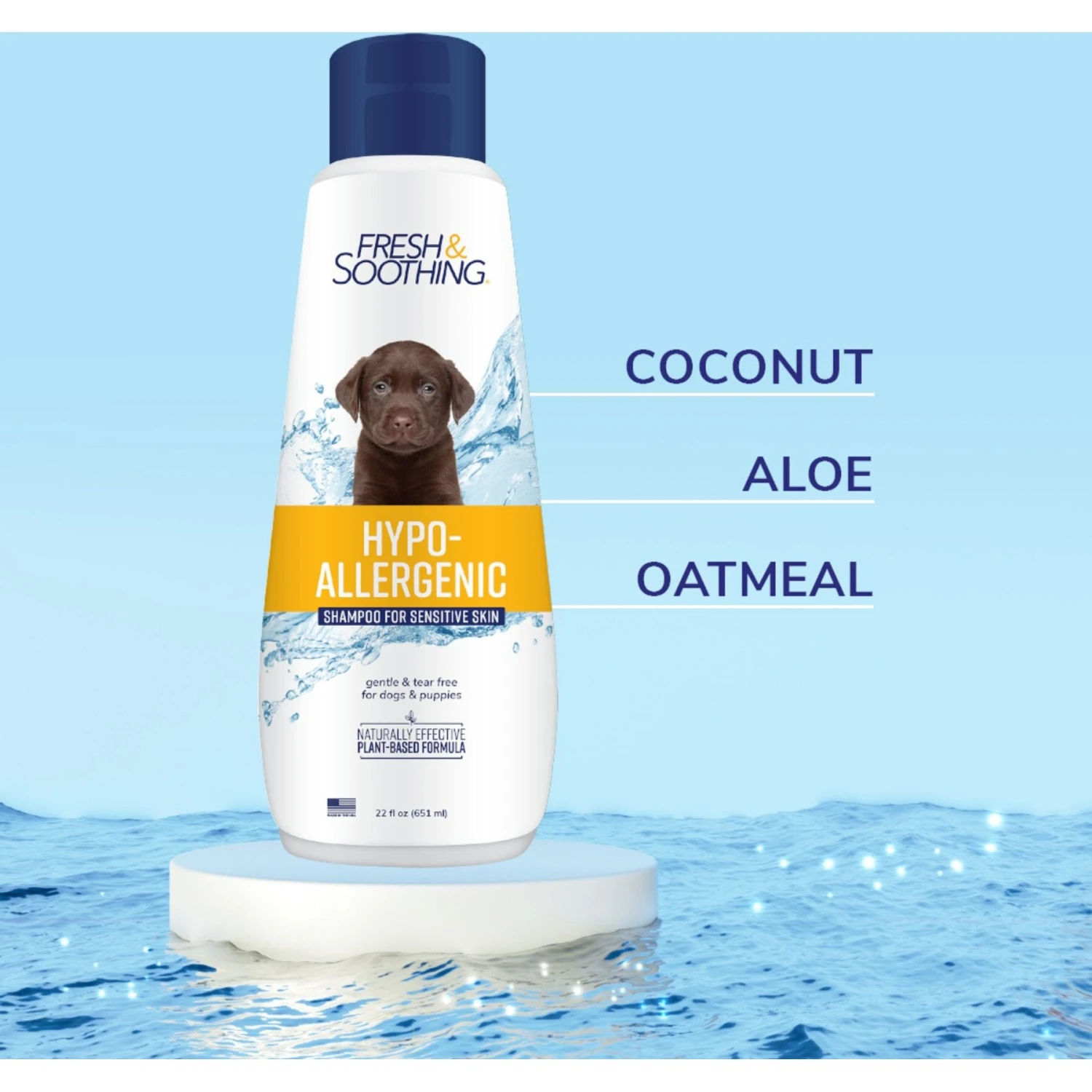 - Hypoallergenic, oatmeal dog shampoo gently cleanses and soothes your pup’s sensitive skin and coat and leaves him smelling fur-esh!