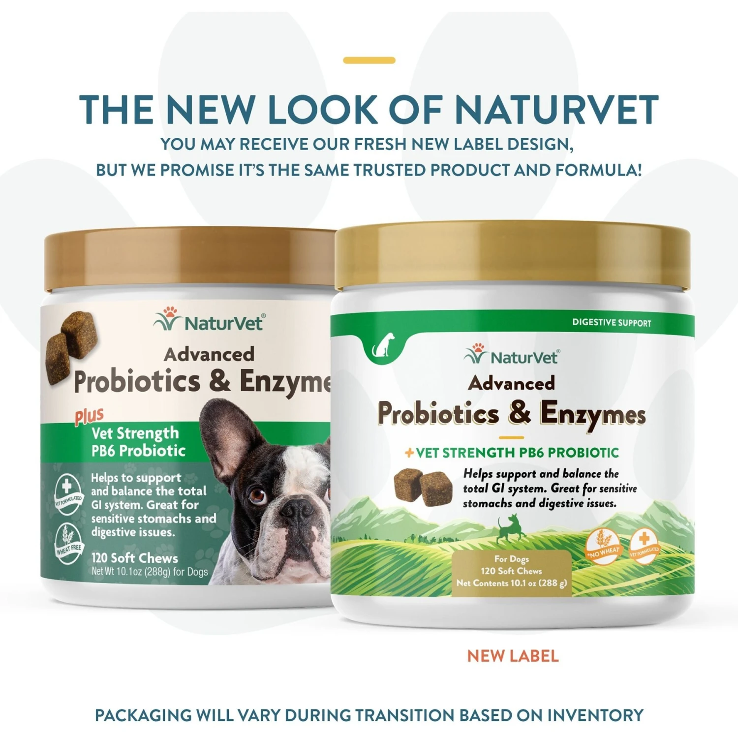 NaturVet Advanced Probiotics & Enzymes Plus Vet Strength PB6 Probiotic Soft Chews Digestive Supplement For Dogs