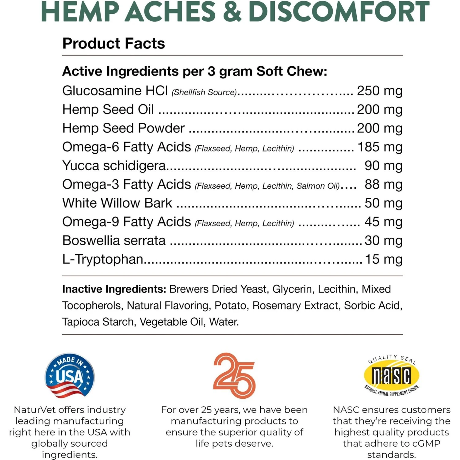 NaturVet Hemp Aches & Discomfort Glucosamine Plus Hemp Seed Dog Supplement