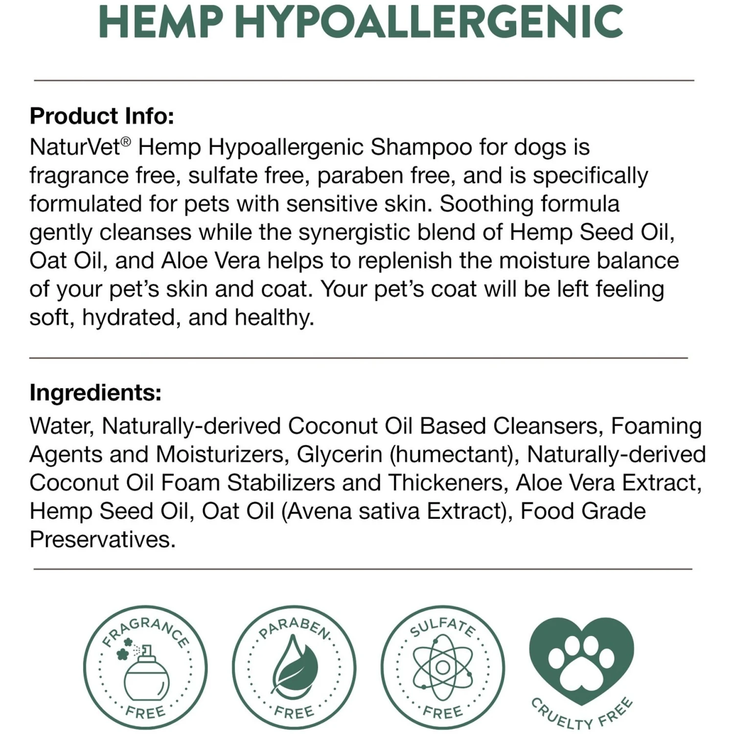 NaturVet Hemp Hypoallergenic Dog Shampoo With Oat & Aloe