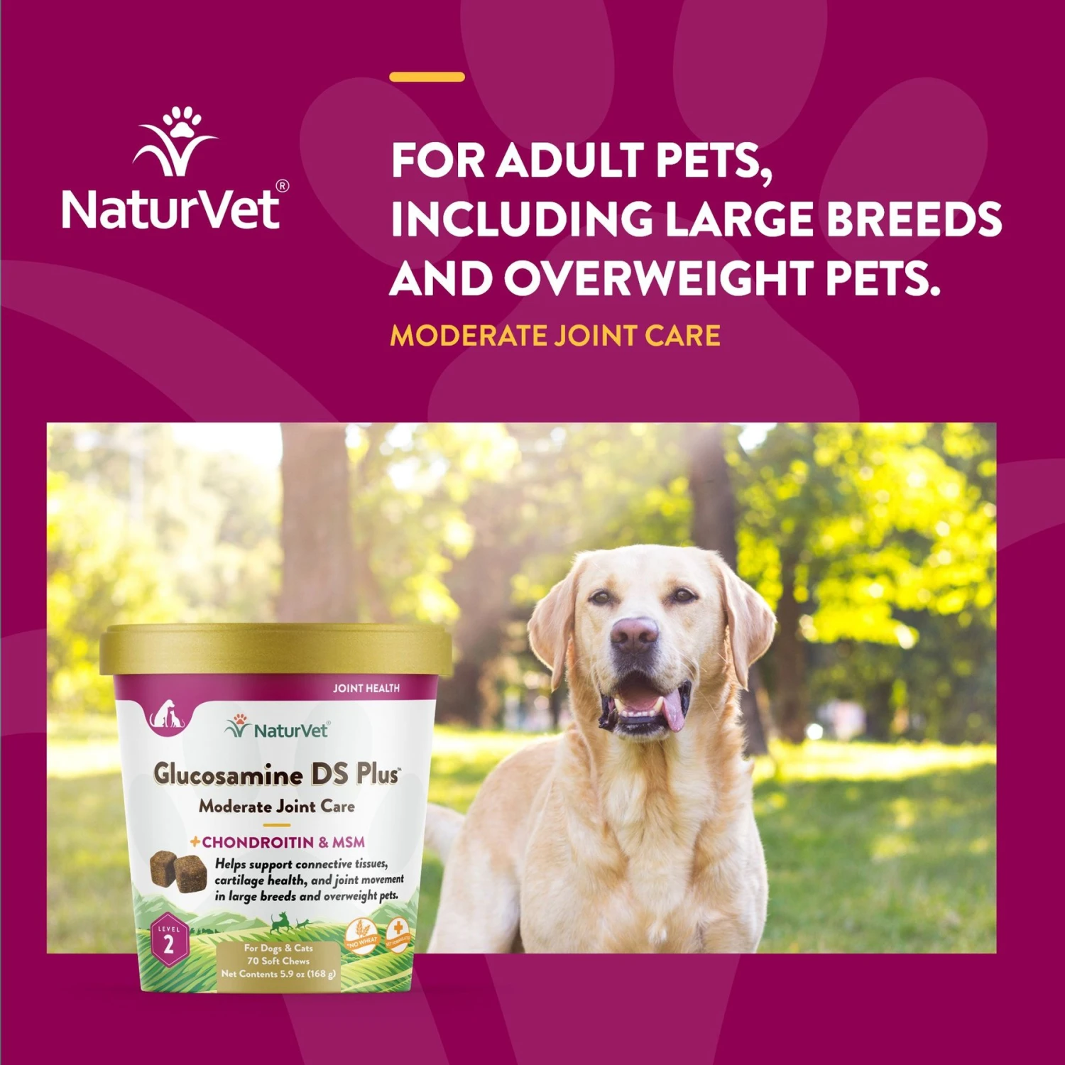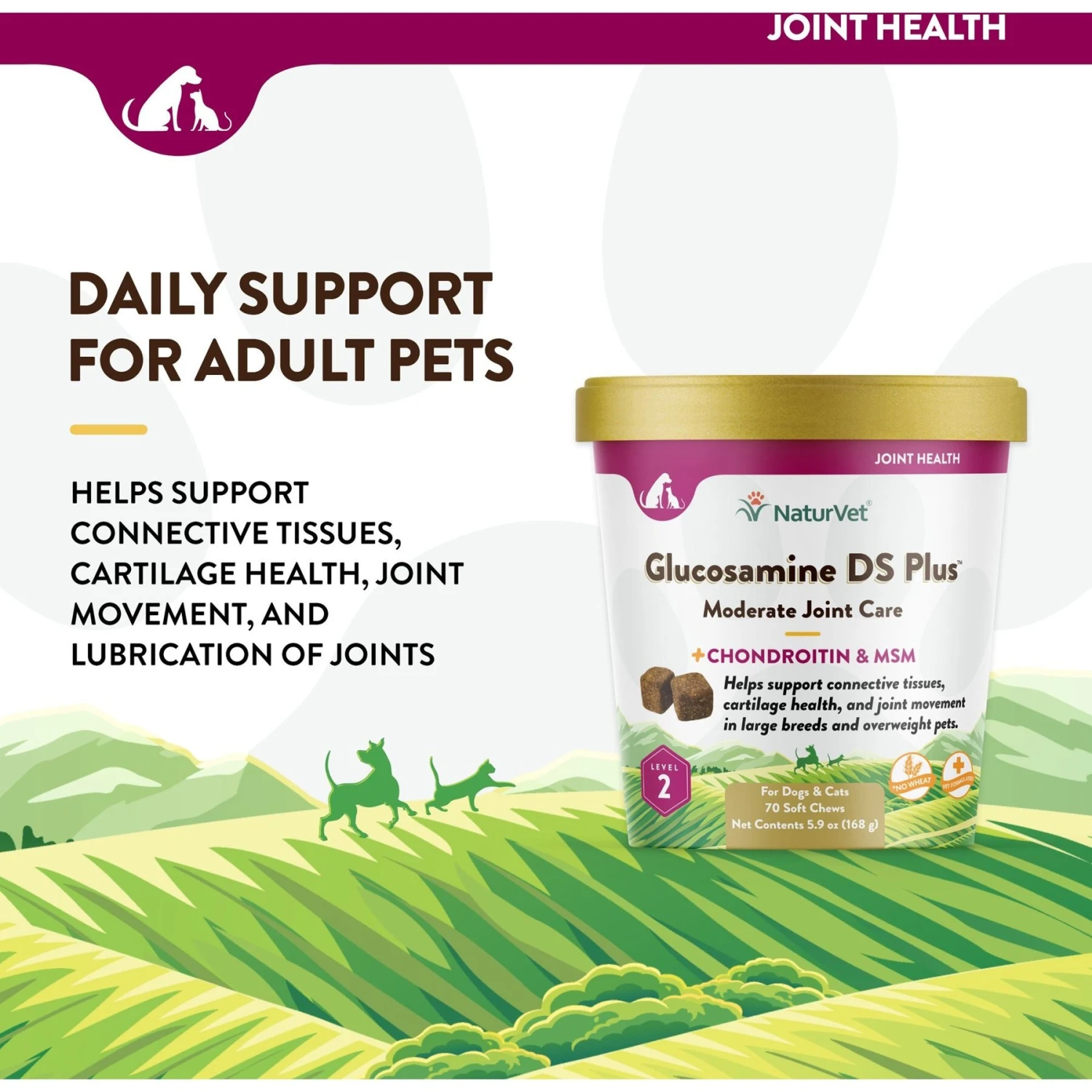 - Contains Glucosamine, MSM an Chondroitin to help support the structural integrity of joints and connective tissues