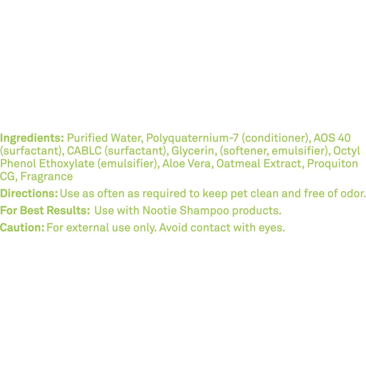 - Moisturizing properties of glycerin, oatmeal extract, and soothing aloe vera to condition skin and coat.