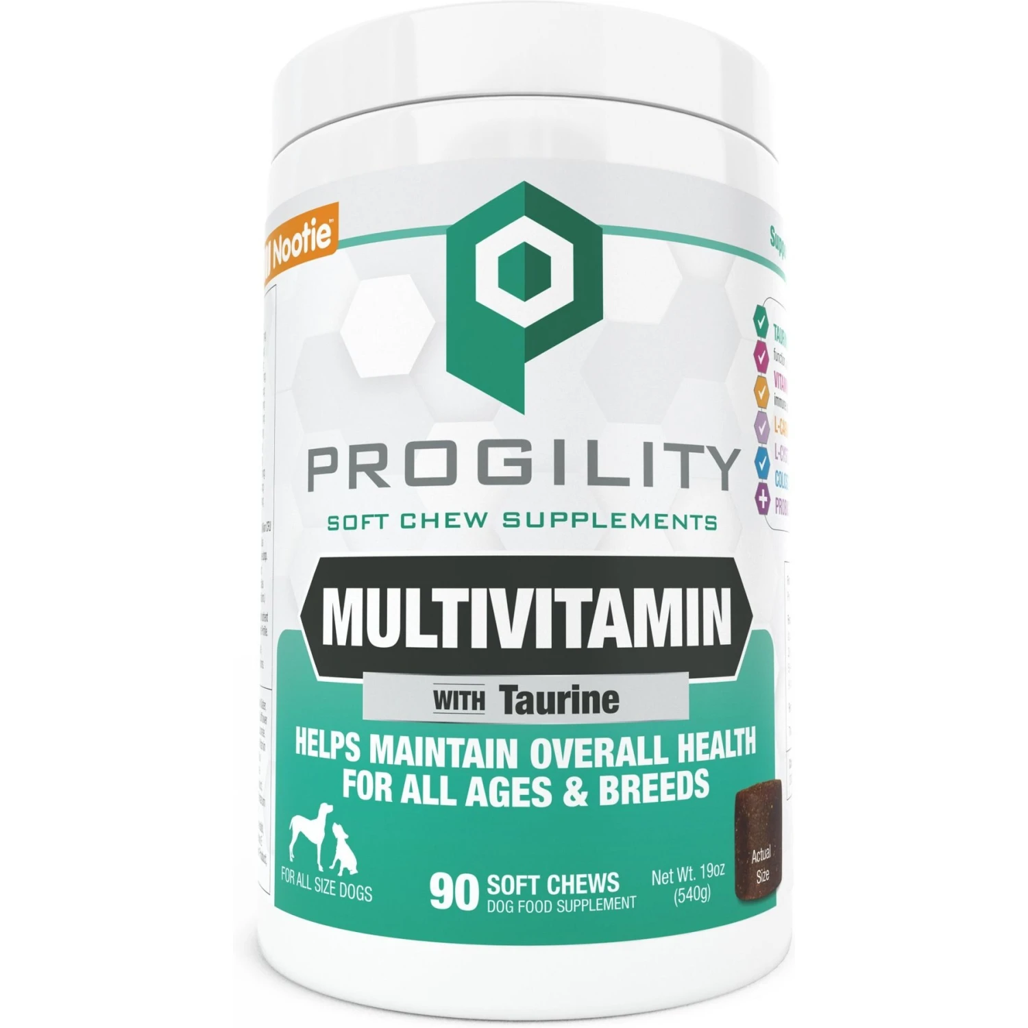 Nootie Progility Bacon Flavored Multivitamin With Taurine Soft Chew For Adult Dogs, 90 Count