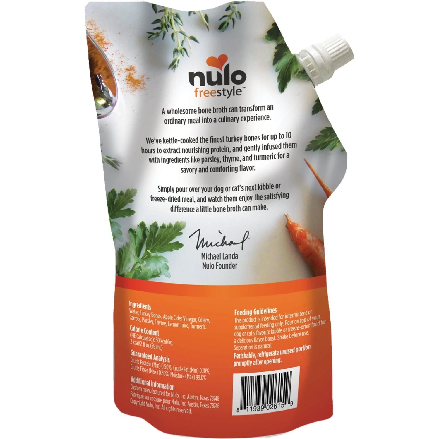 Nulo FreeStyle Grain-Free Classic Turkey Bone Broth Dog & Cat Topper, 20-oz Pouch