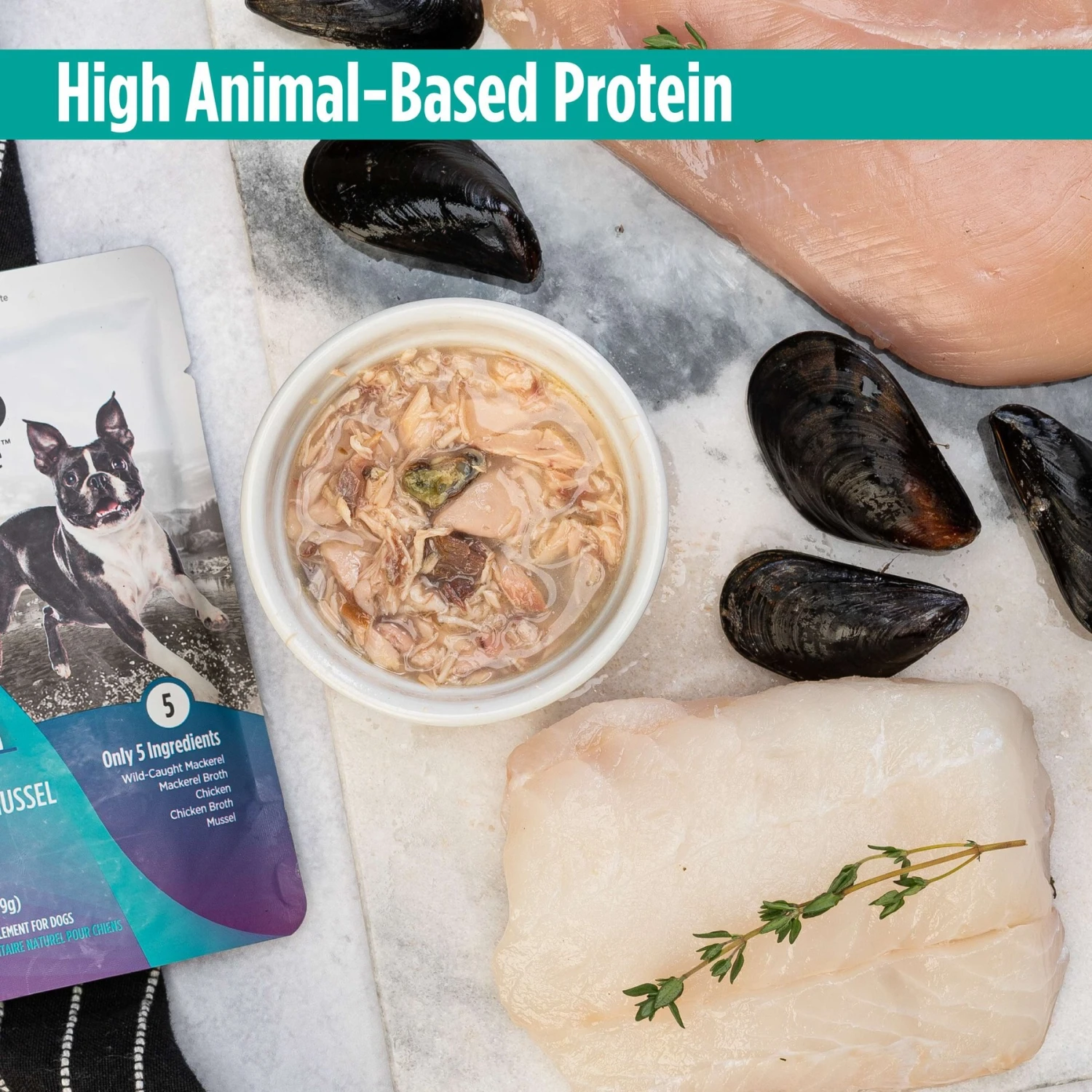 - 6-ingredient recipe contains just all-natural shredded chicken, wild-caught mackerel, mussels, pumpkin, chicken broth and mackerel broth.