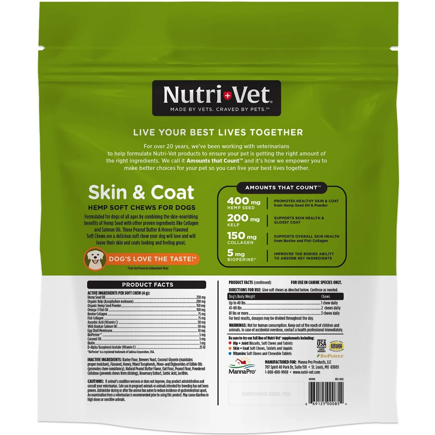 Nutri-Vet Hemp Peanut Butter & Honey Flavor Skin & Coat Soft Chew Supplement For Adult Dogs, 12.7-oz