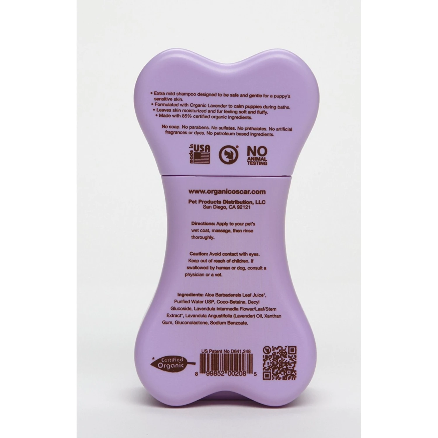 - Organic Oscar’s Lavender Puppy Shampoo is soap-free, extra mild and non-irritating.