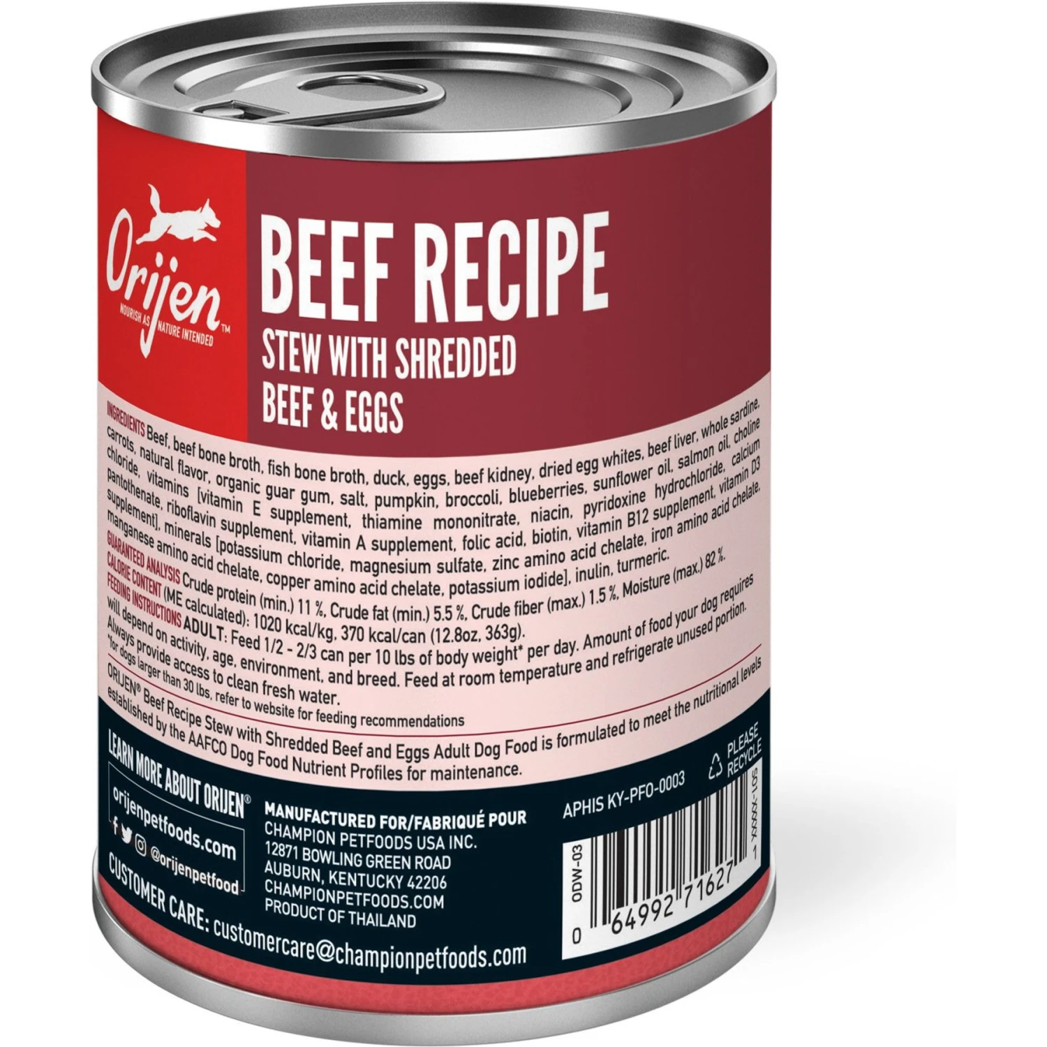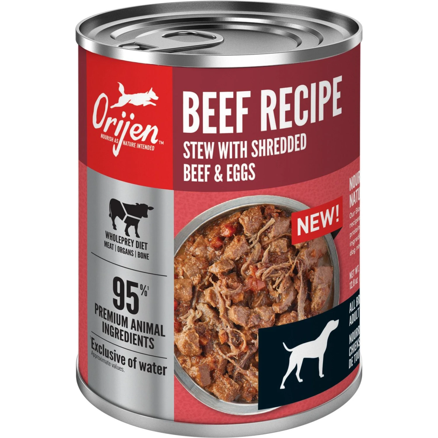ORIJEN Real Meat Shreds Beef Recipe Stew Grain-Free Wet Dog Food, 12.8-oz Can, Case Of 12