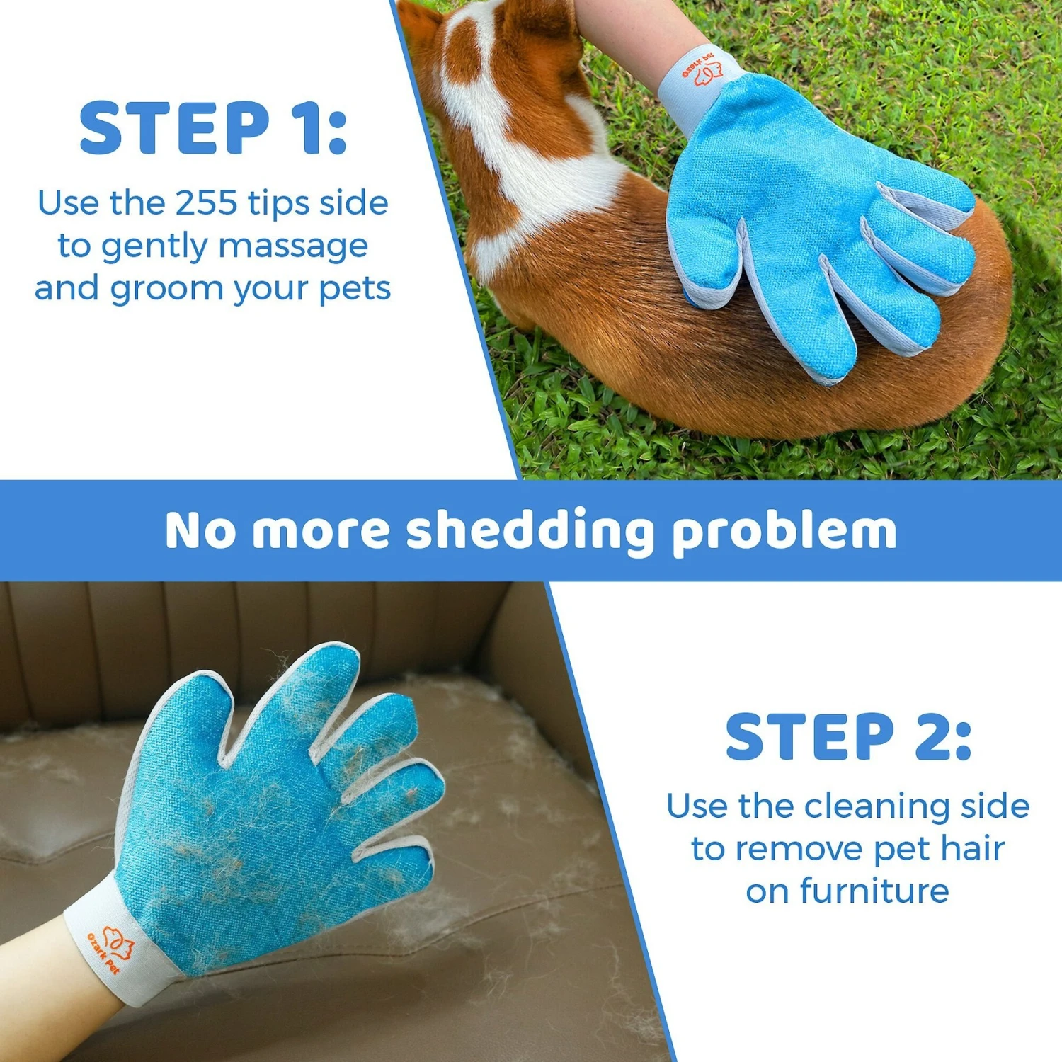 - Machine-washable glove has 255 tips on one side to help you quickly de-shed your pet.