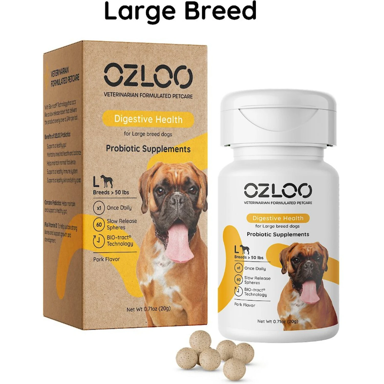 OZLOO Large Breed Digestive Health Probiotic Dog Supplement, 60 Count