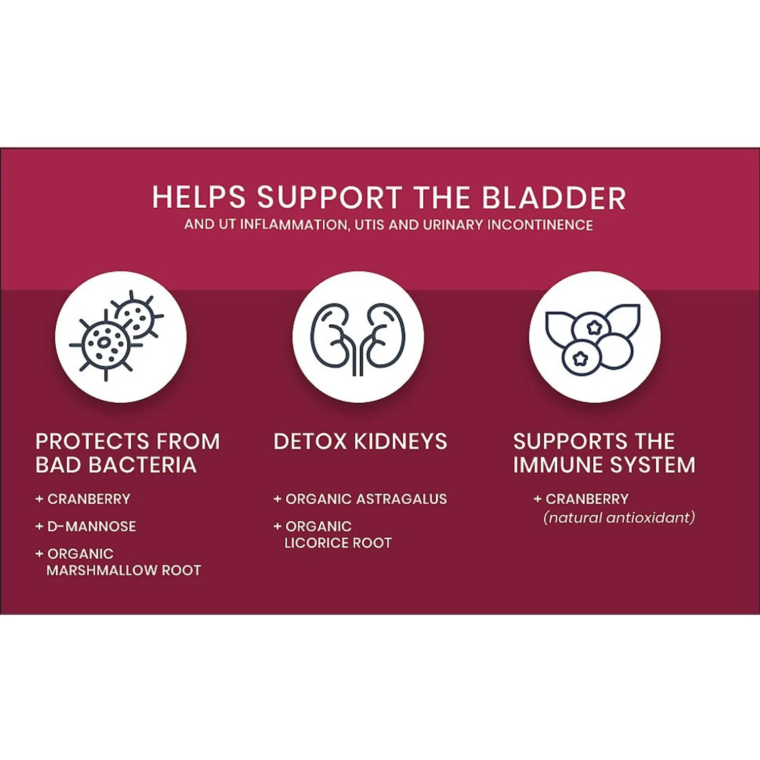 - Contains an ideal combination of cranberry, D-Mannose, marshmallow root, astragalus root, and licorice root.