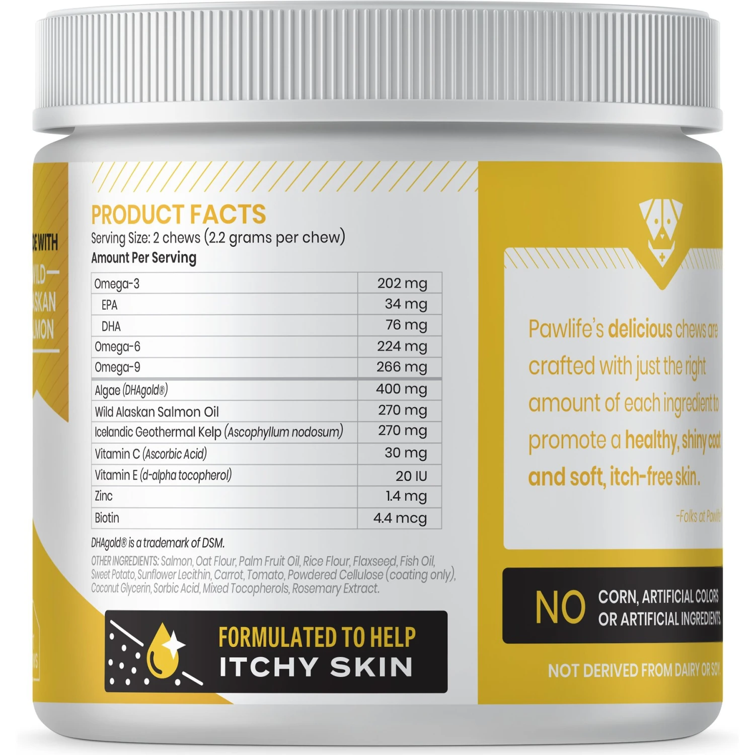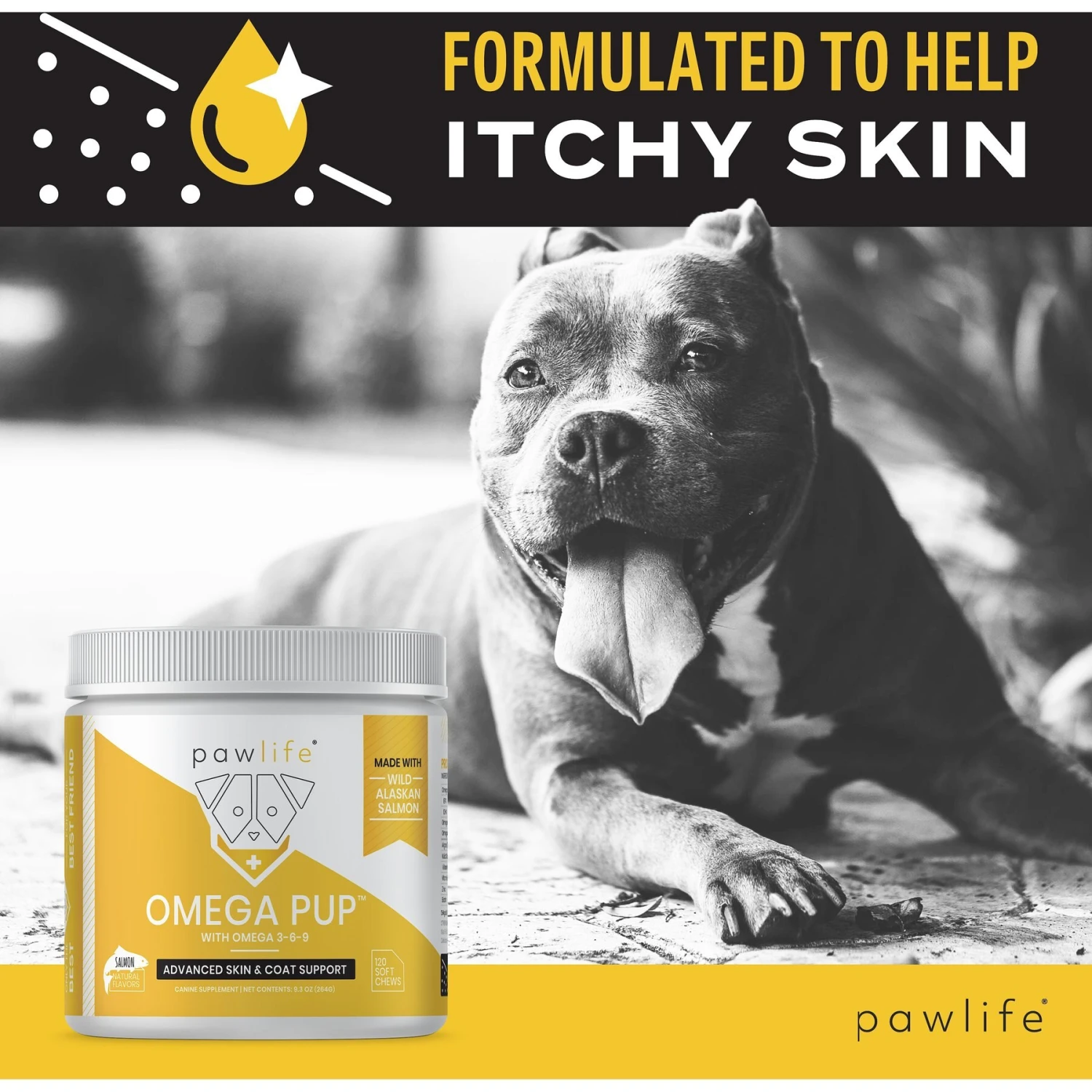 Pawlife Omega Pup Advanced Skin & Coat Support Salmon Flavor Soft Chews Dog Supplement, 120 Count