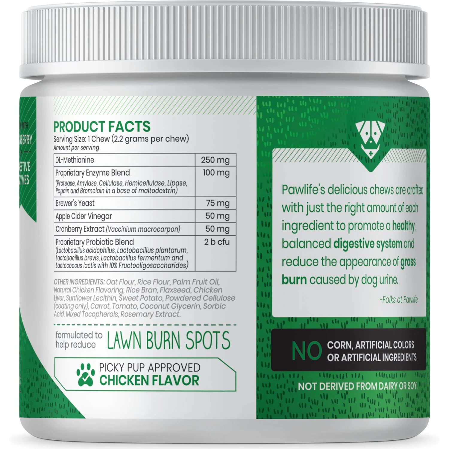 Pawlife Turf Treats Lawn Burn Protection Urinary & Digestive Support Chicken Flavor Soft Chews Dog Supplement, 120 Count