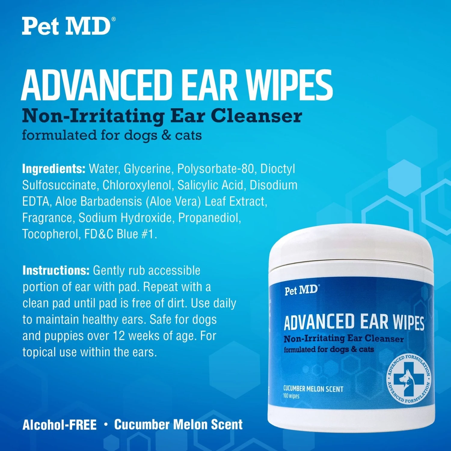 Pet MD Advanced Dog & Cat Ear Cleaner Wipes, 100 Count
