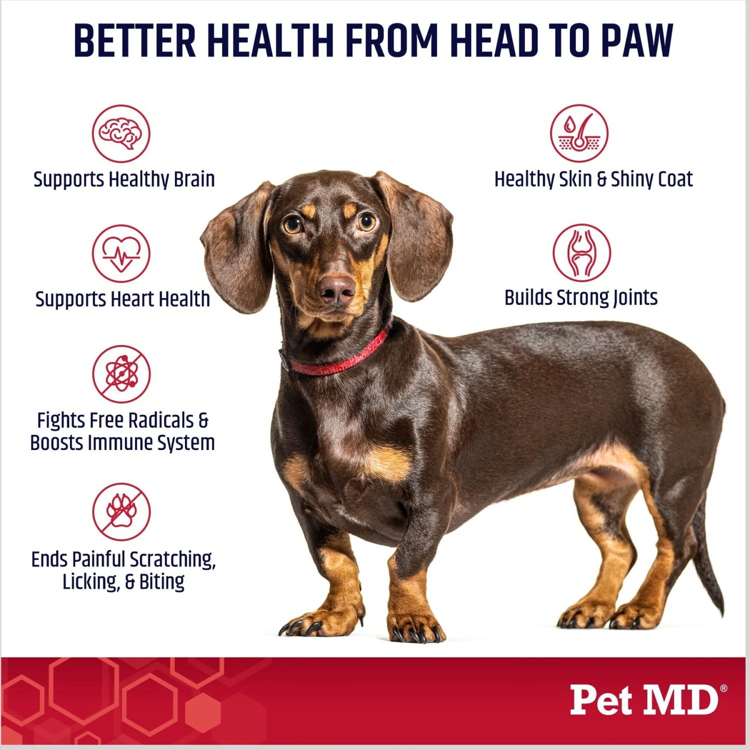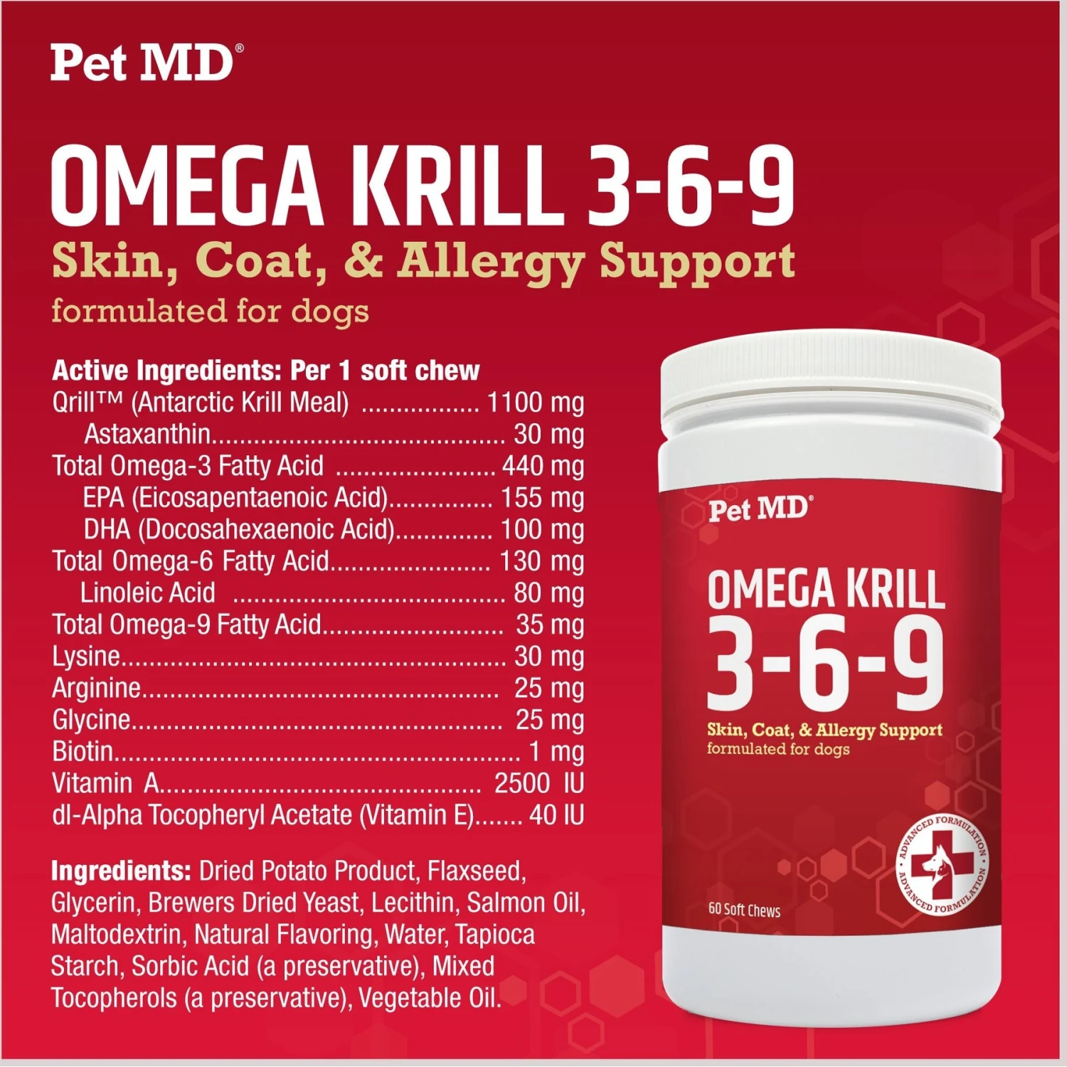 Keep your canine companion’s skin and coat in tip top shape with Pet MD Omega Select Soft Chews with Krill Dog Supplement! These soft, chewy supplements are enriched with beneficial Antarctic krill oil, which is packed with Omega 3, 6, and 9 fatty acids. These acids promote healthy fur growth and help prevent excess shedding and itchy skin. These chews can defend your pup from environmental allergens while maintaining a healthy level of skin moisture. Additionally, the fatty acids can support his heart, joints, and immune system, meaning your pup can look and feel beautiful both inside and out! Simply serve as directed to help improve his quality of life.