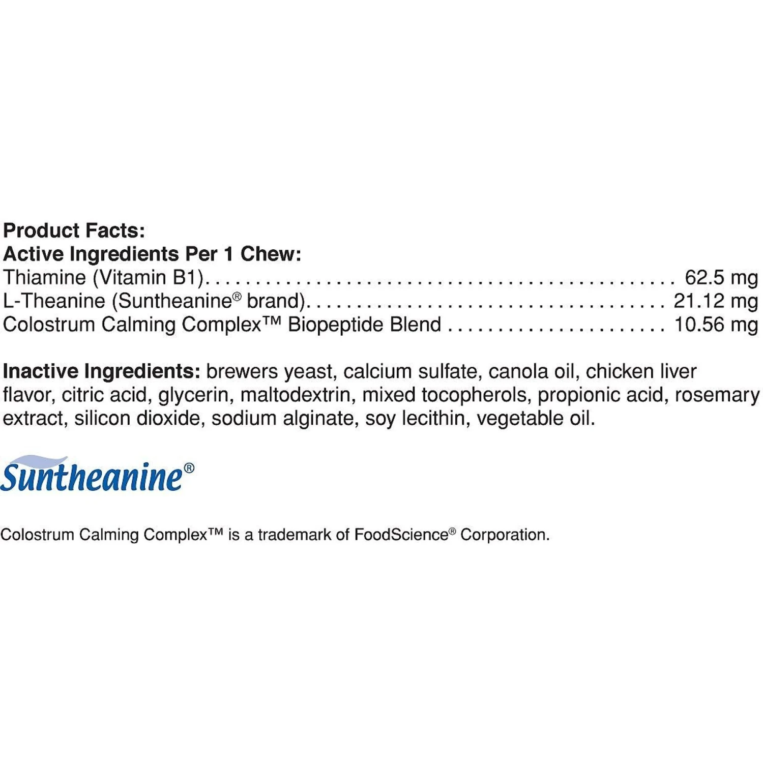 - Natural ingredients include Colostrum Calming Complex Biopepide Blend, L-Theanine and Vitamin B to promote a calming effect.