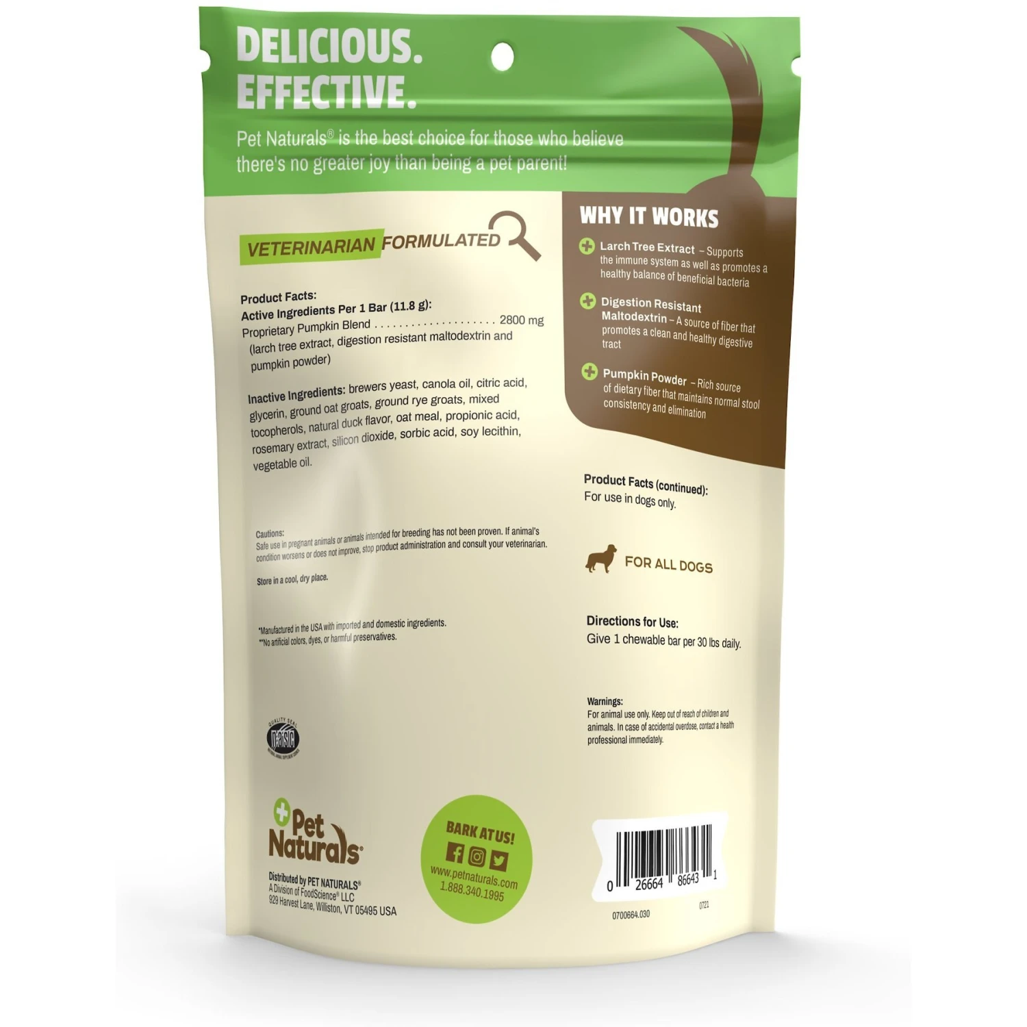 - Made with real pumpkin, which blends larch tree extract for producing beneficial bacteria, and digestion resistant maltodextrin for maintaining regularity and fecal quality