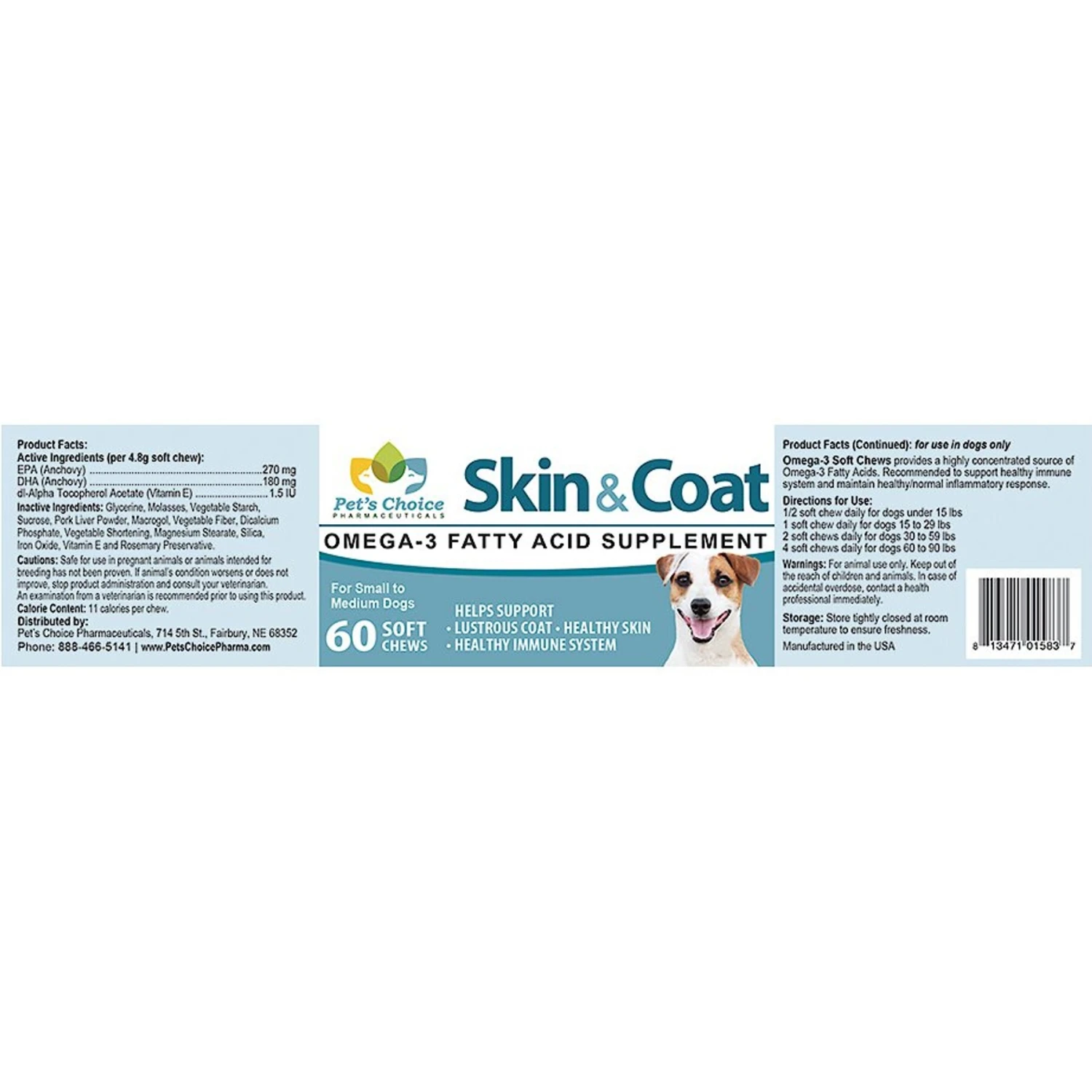 Pet’s Choice Pharmaceuticals Skin & Coat Small To Medium Breed Soft Chews Dog Supplements