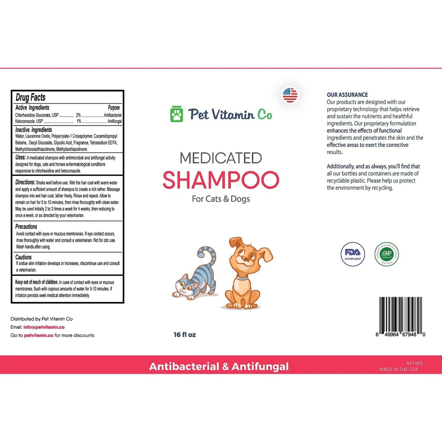 Pet Vitamin Co Medicated Dog & Cat Shampoo, 16-oz Bottle