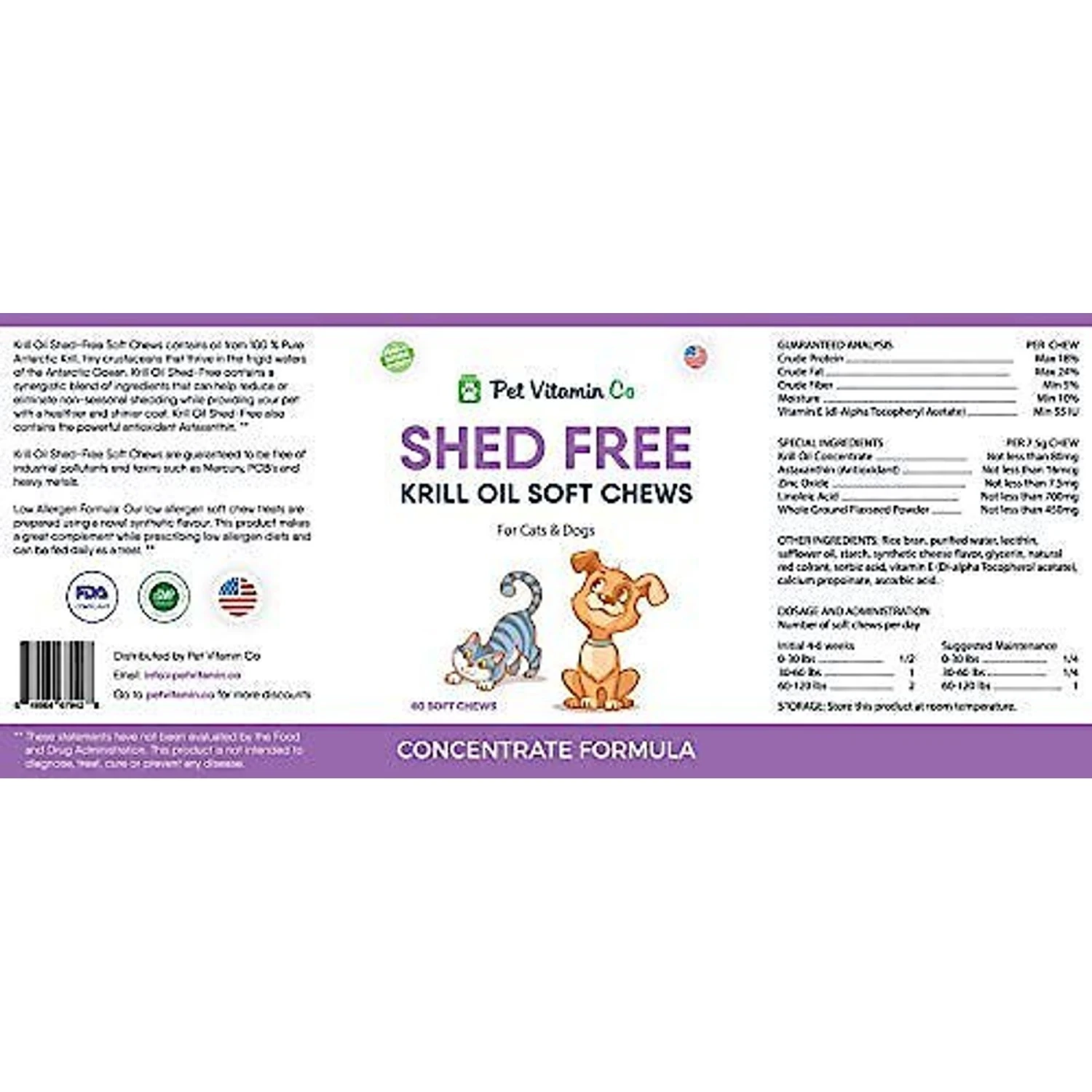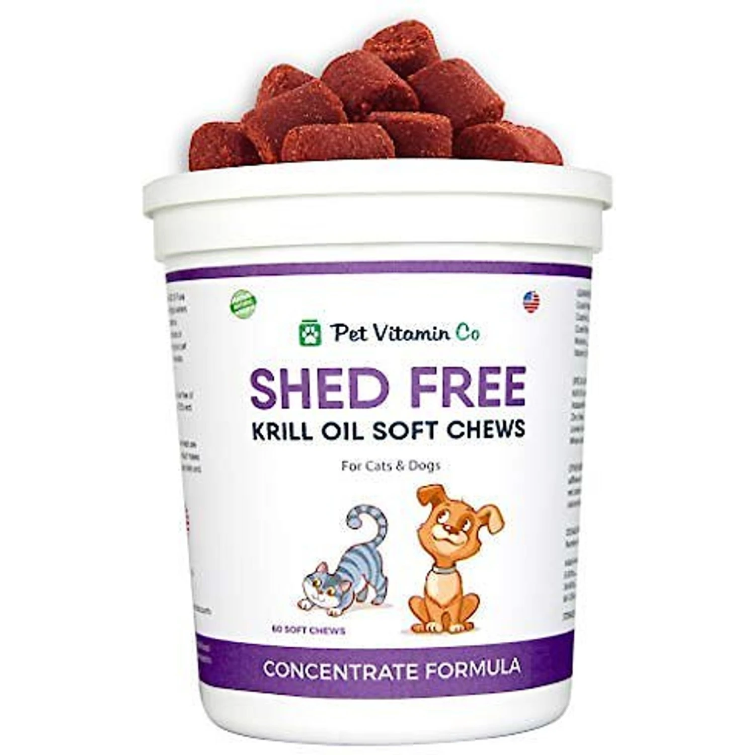Pet Vitamin Co Shed Free Krill Oil Soft Chews Dog & Cat Supplement, 60 Count