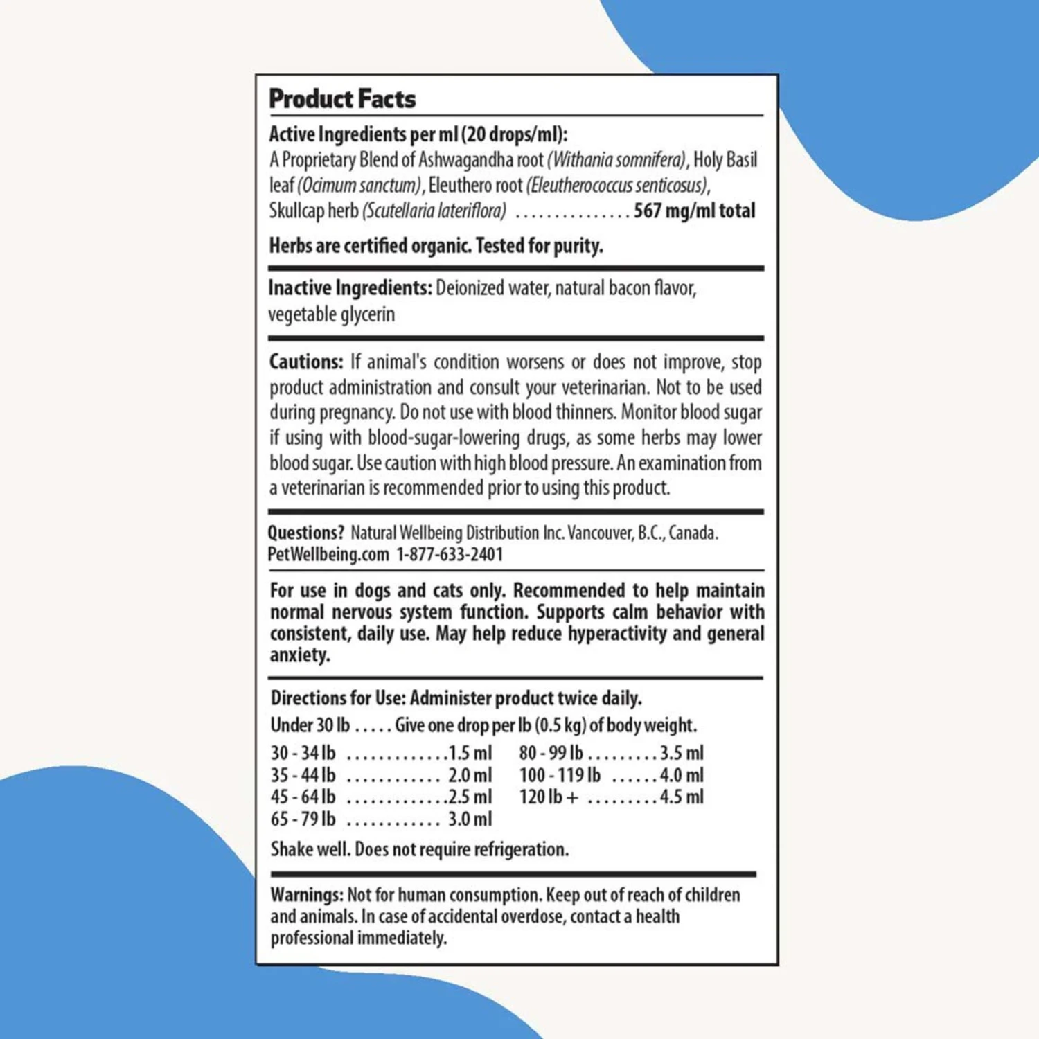 Pet Wellbeing Calming CARE Bacon Flavored Liquid Calming Supplement For Cats & Dogs