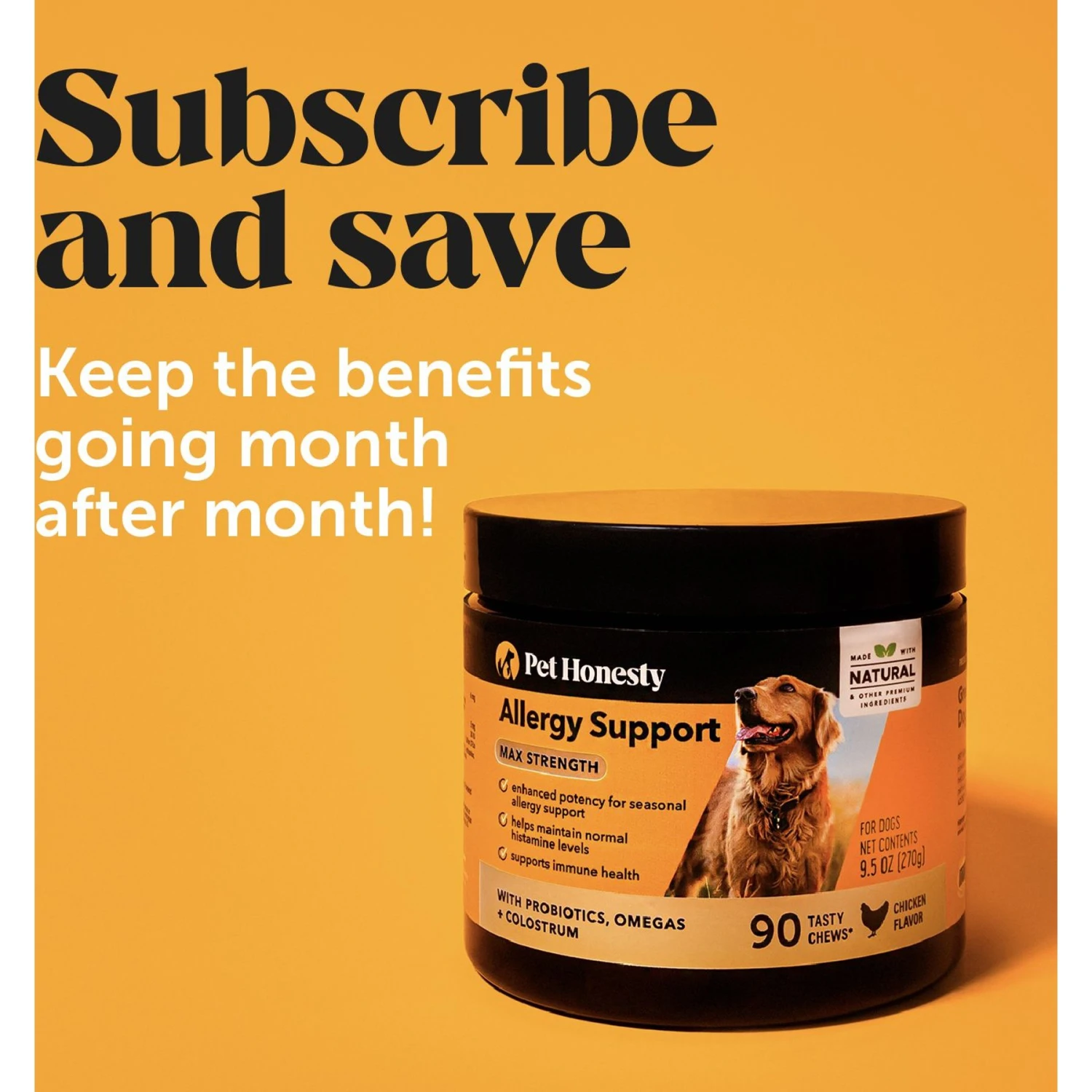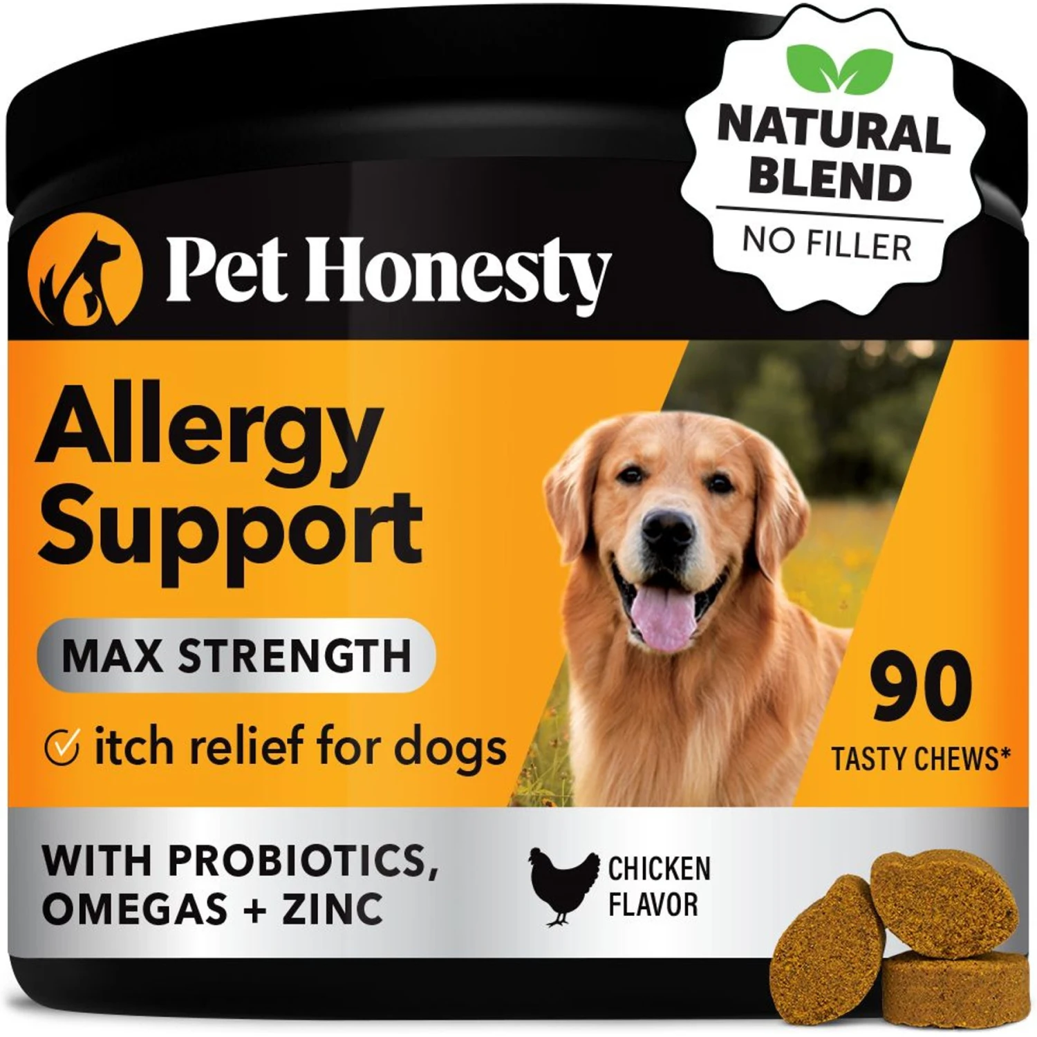 PetHonesty Allergy Support Max-Strength Chicken Flavored Soft Chews Allergy Supplement For Dogs, 90 Count