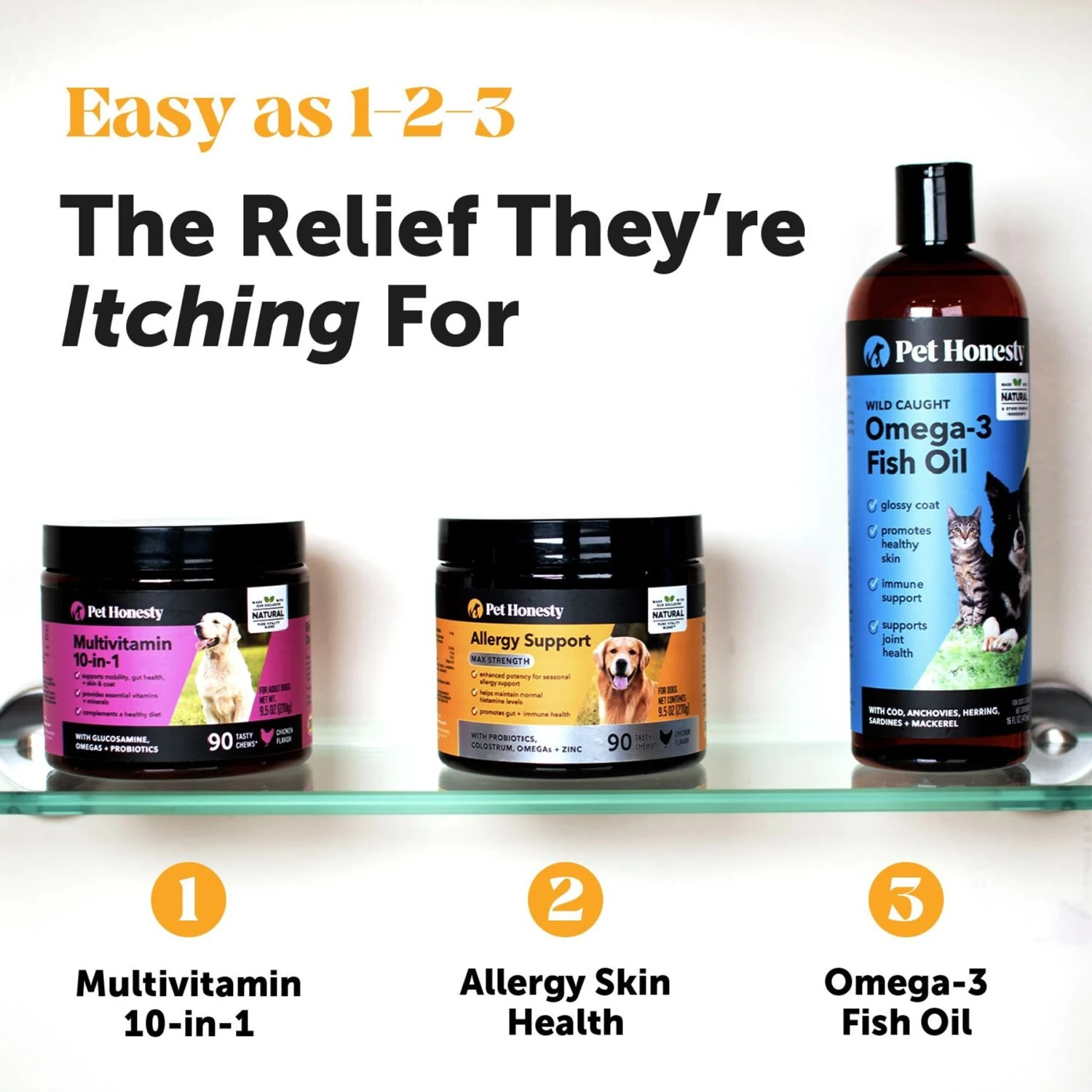 - Ingredients like omegas and probiotics work to help relieve allergy-related skin problems.