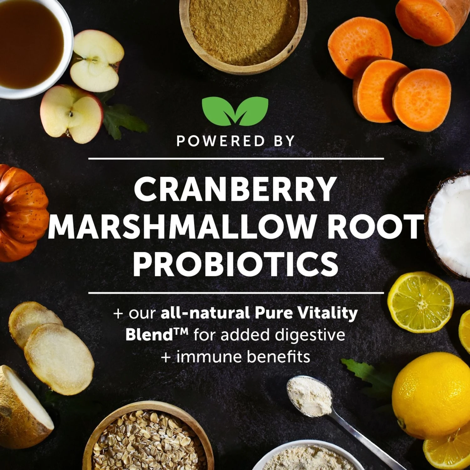 - Cranberry, D-mannose and marshmallow root help maintain a healthy urinary tract, normalize bladder muscle strength and support your pal’s immune system.