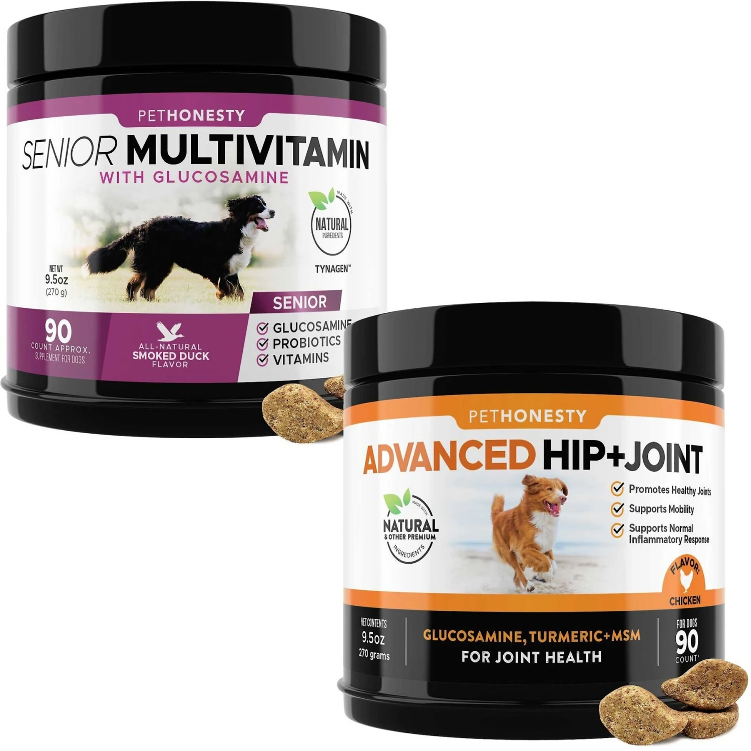 PetHonesty Duck Flavored Soft Chews Multivitamin For Senior Dogs & PetHonesty Advanced Hip + Joint Chicken Flavored Soft Chews Joint Supplement For Dogs