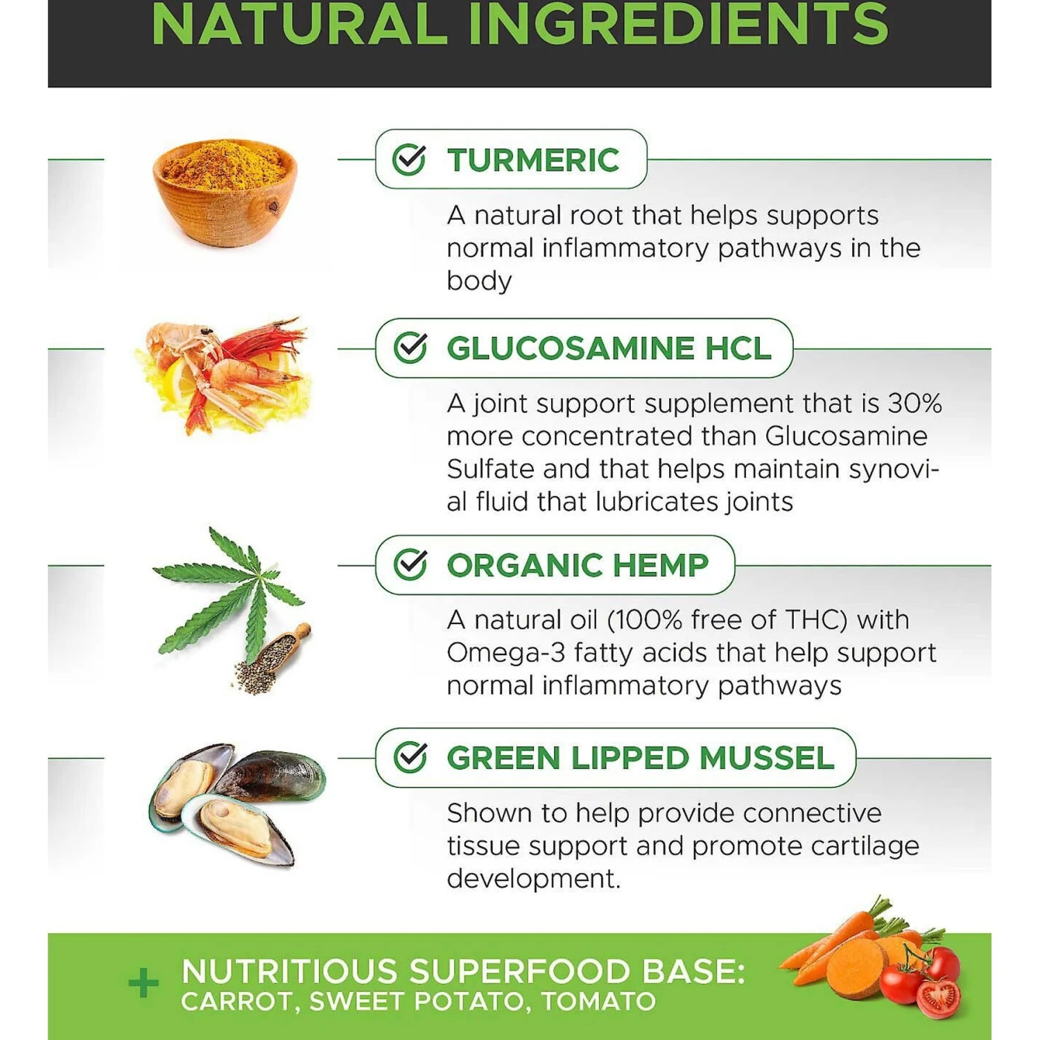 - Glucosamine HCL, methylsulfonylmethane (MSM), turmeric and green lipped mussels help provide building blocks for synovial fluid, cartilage and connective tissues.