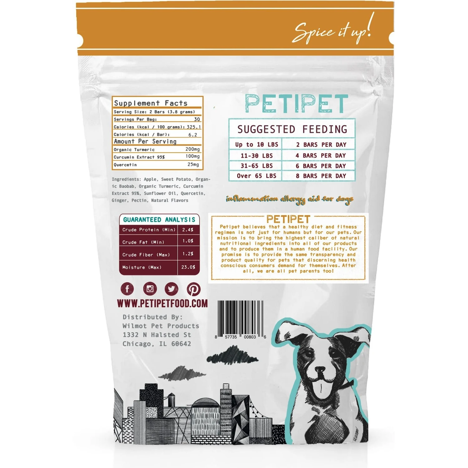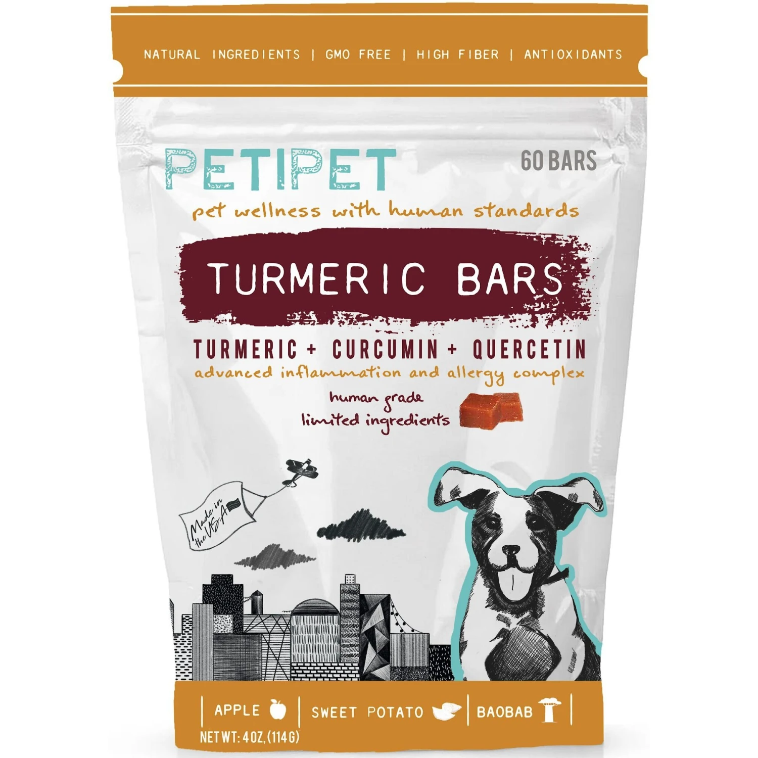 PETIPET Turmeric Bars Inflammation & Allergy Complex Plant Based Dog Supplement