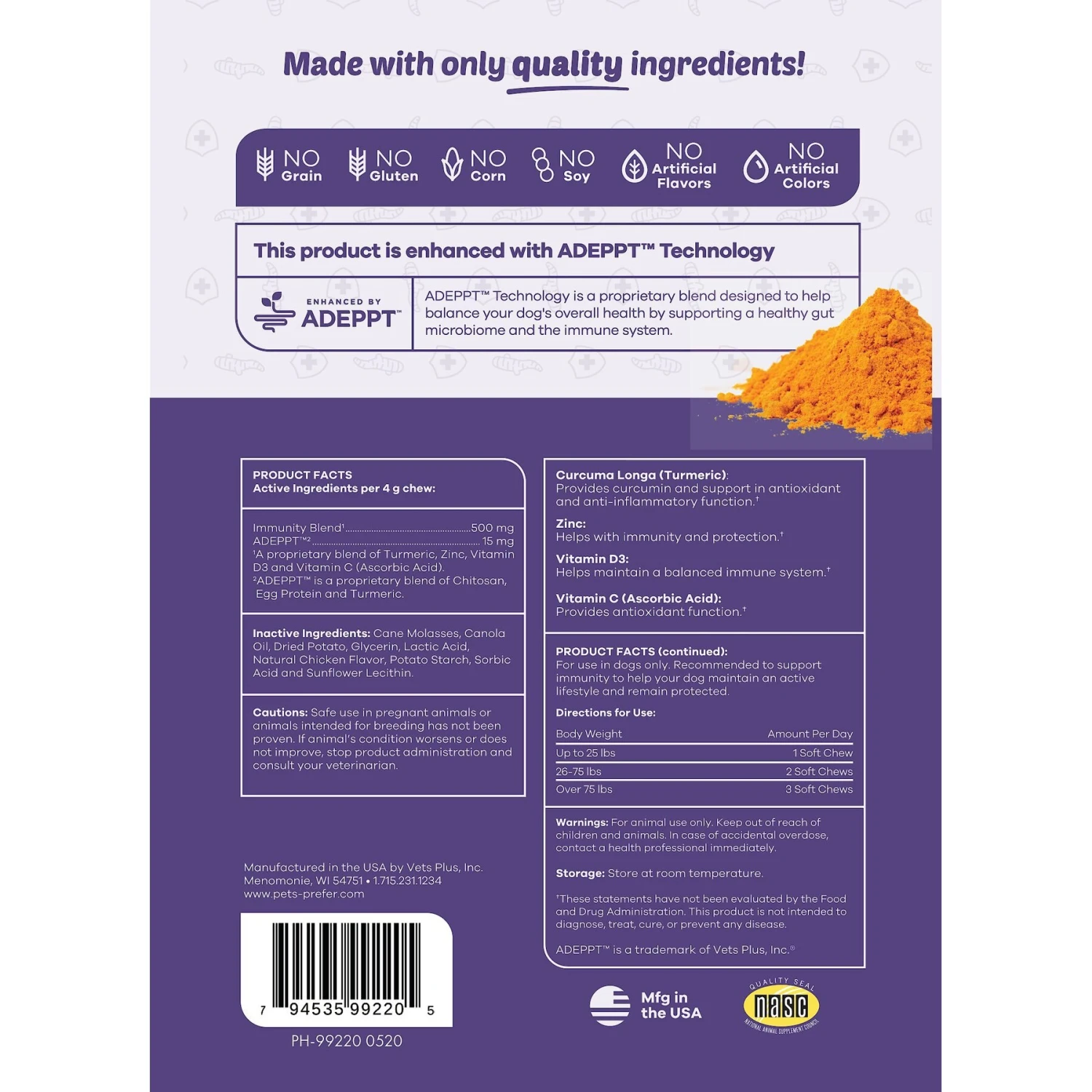 - Nourishes your pet’s immune system with a blend of zinc, turmeric, and vitamins C and D3.