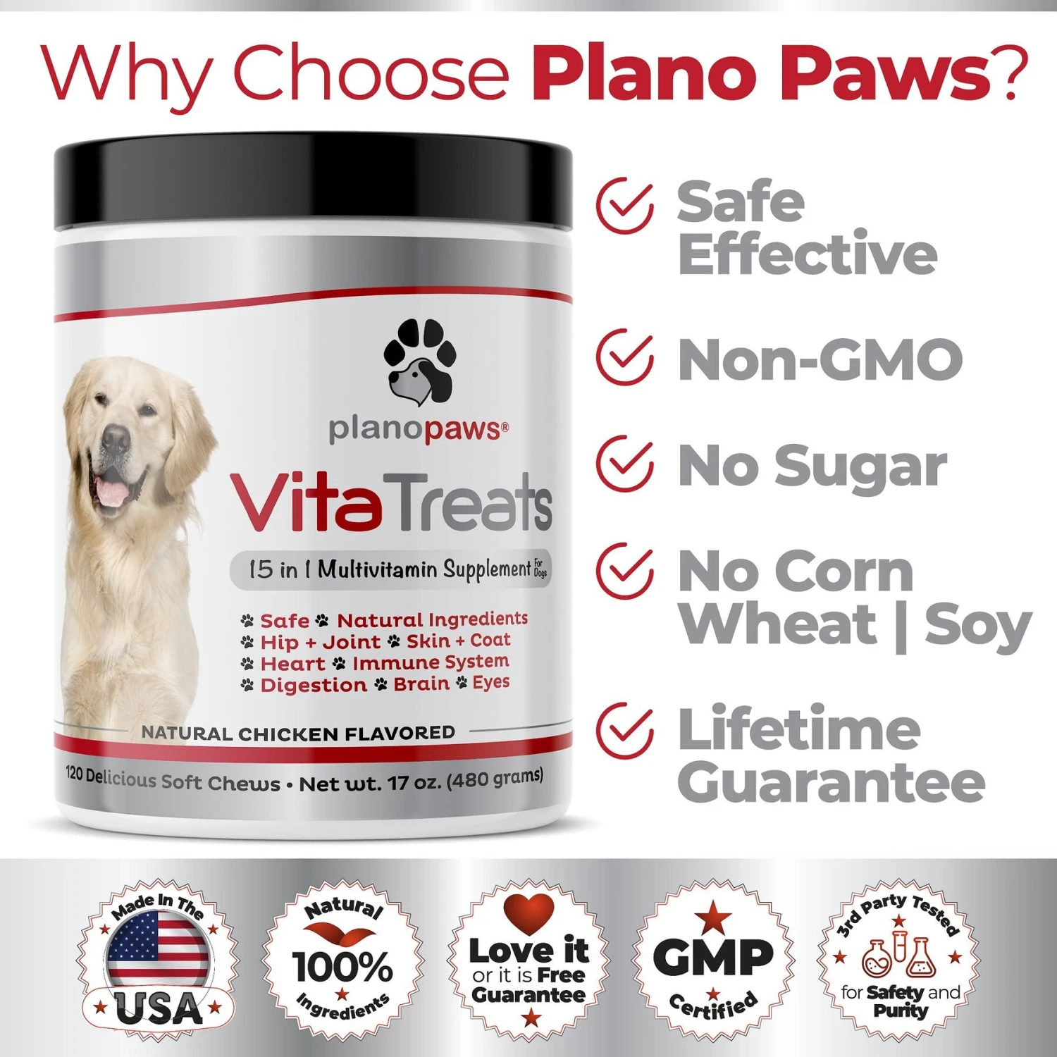 Plano Paws Vita Treats 15 In 1 Multivitamins Natural Chicken Flavor Soft Chews Dog Supplement, 120 Count