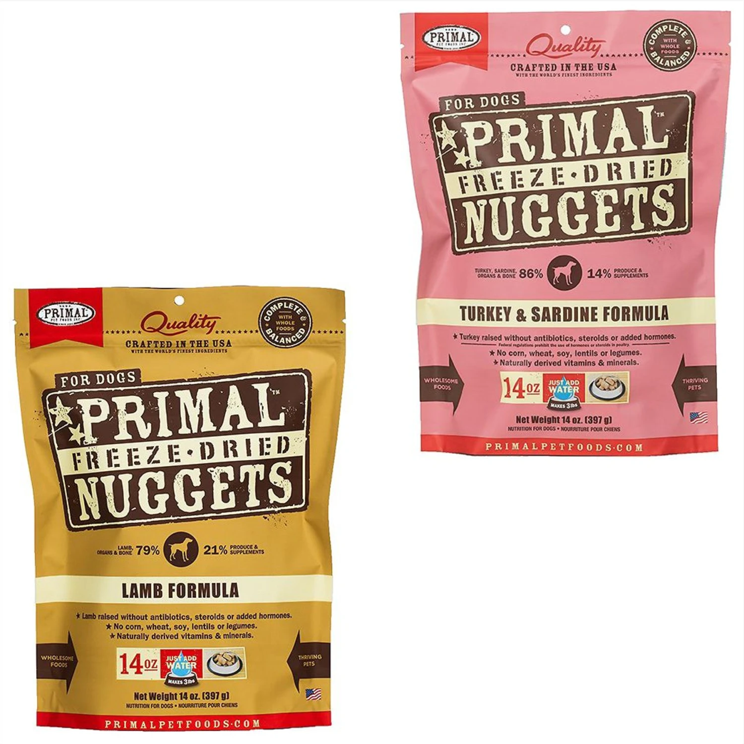 Primal Lamb Formula Nuggets Grain-Free Raw Freeze-Dried Dog Food & Primal Turkey & Sardine Formula Nuggets Grain-Free Raw Freeze-Dried Dog Food