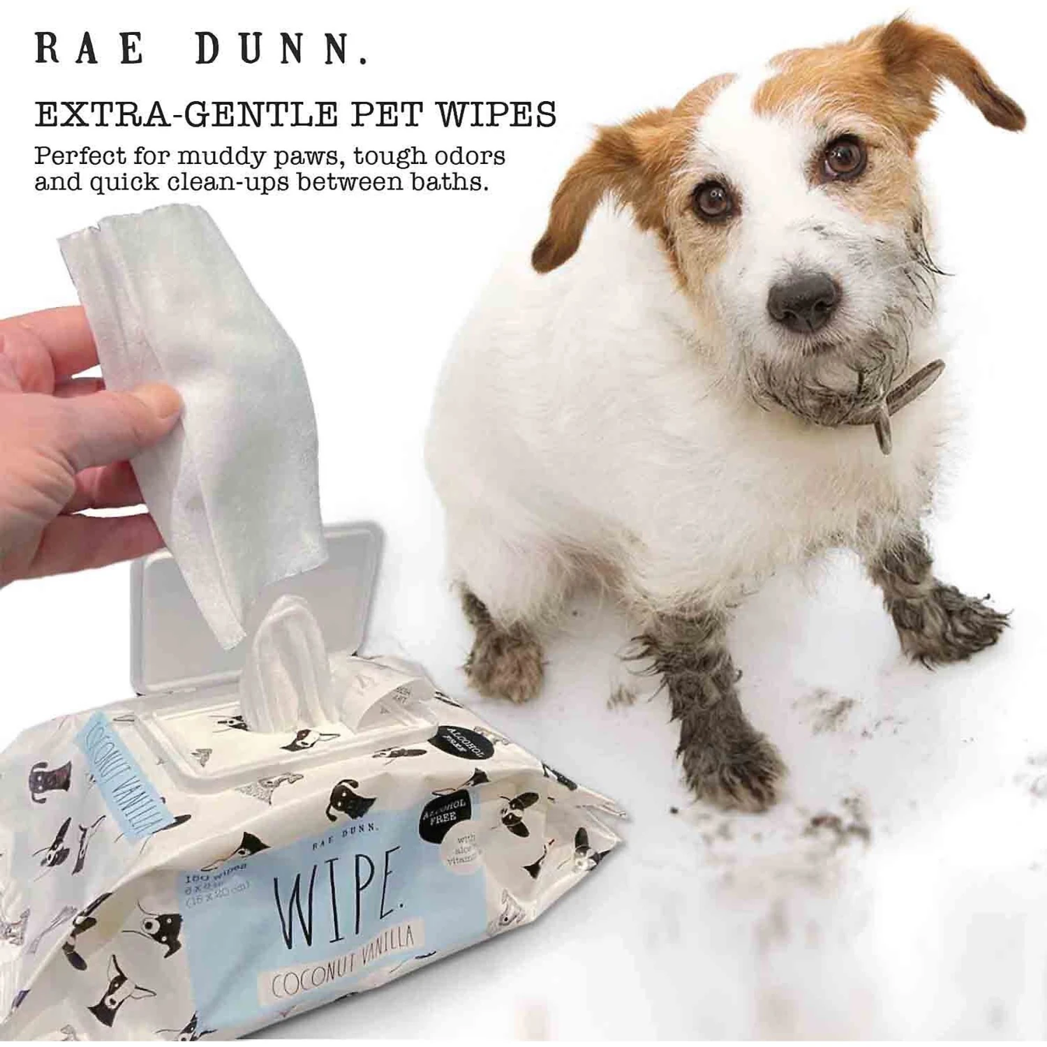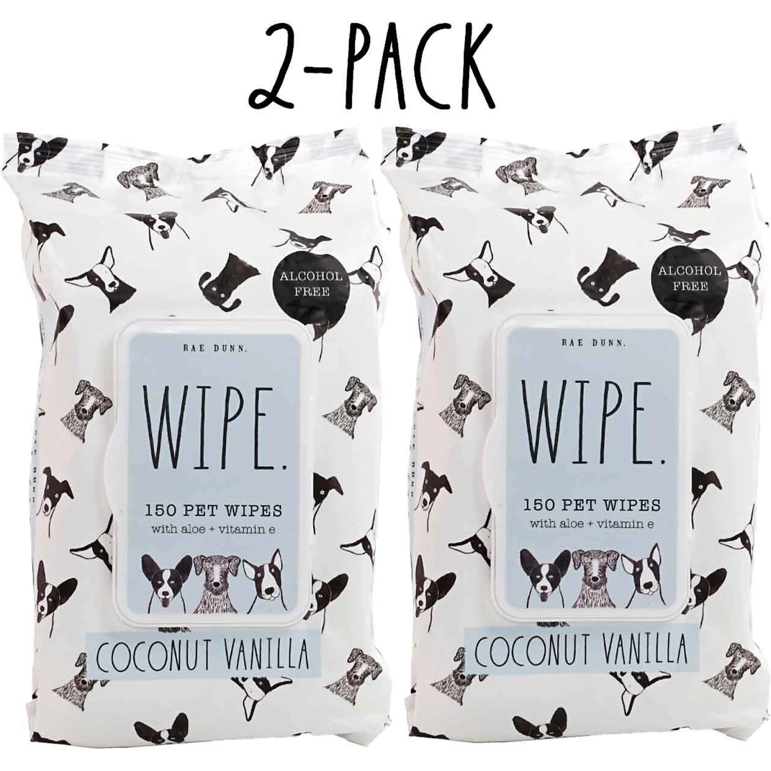 Rae Dunn WIPE. Aloe & Vitamin E Coconut Vanilla Scent Dog Wipes, 150 Count, 2 Pack