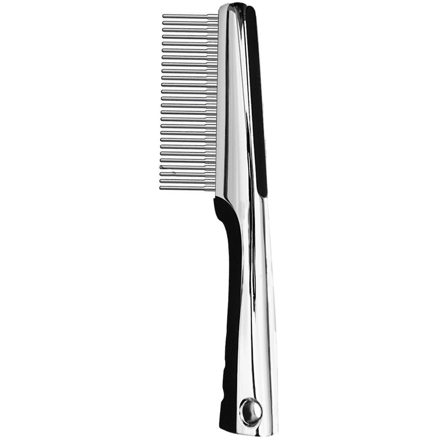 - This comb sports stainless-steel pins set in a heavy-duty metal handle with a soft, comfort grip for an enjoyable brush for both you and your pet.