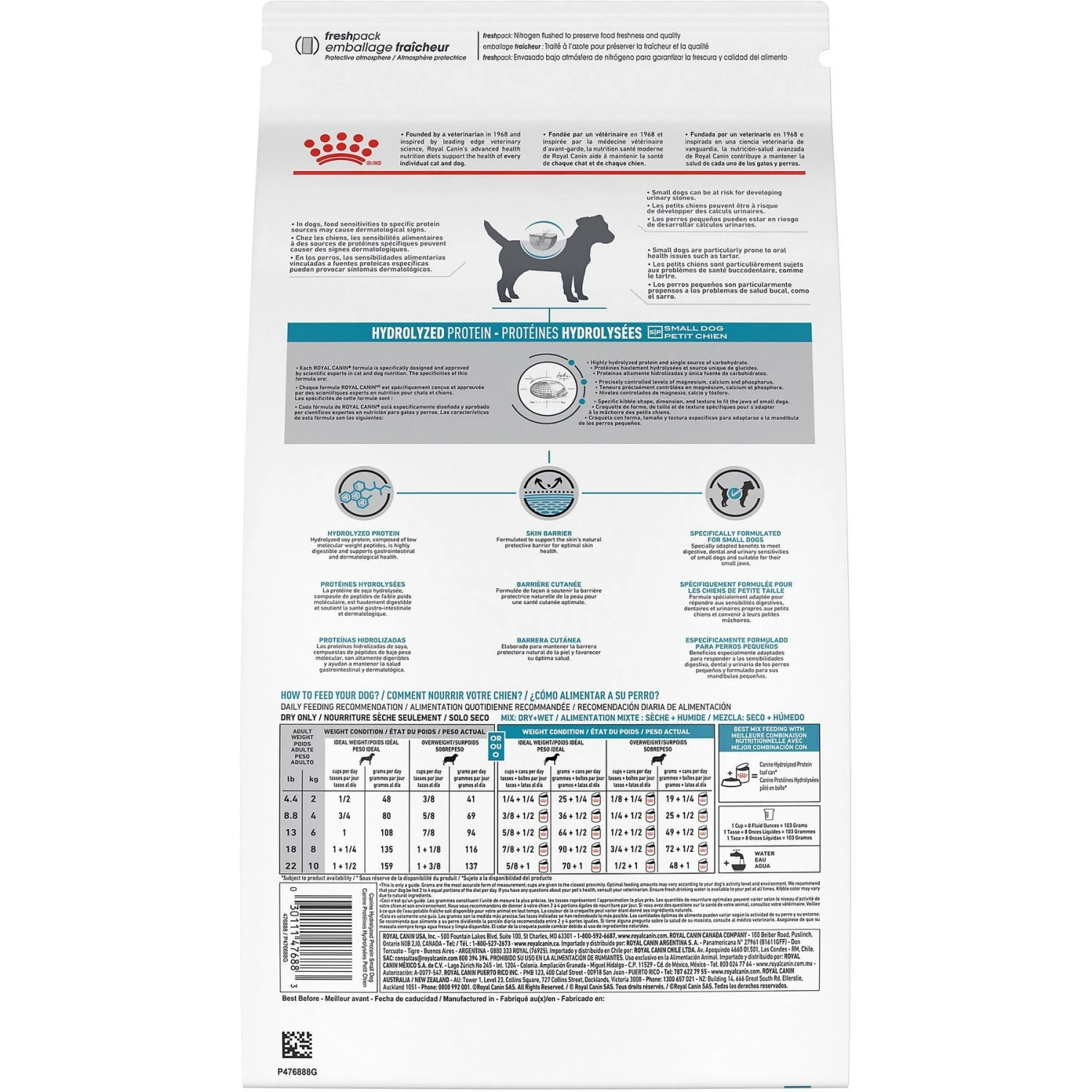 - A veterinary-exclusive dry dog food made with hydrolyzed protein for adult dogs under 22 lbs with food sensitivities.