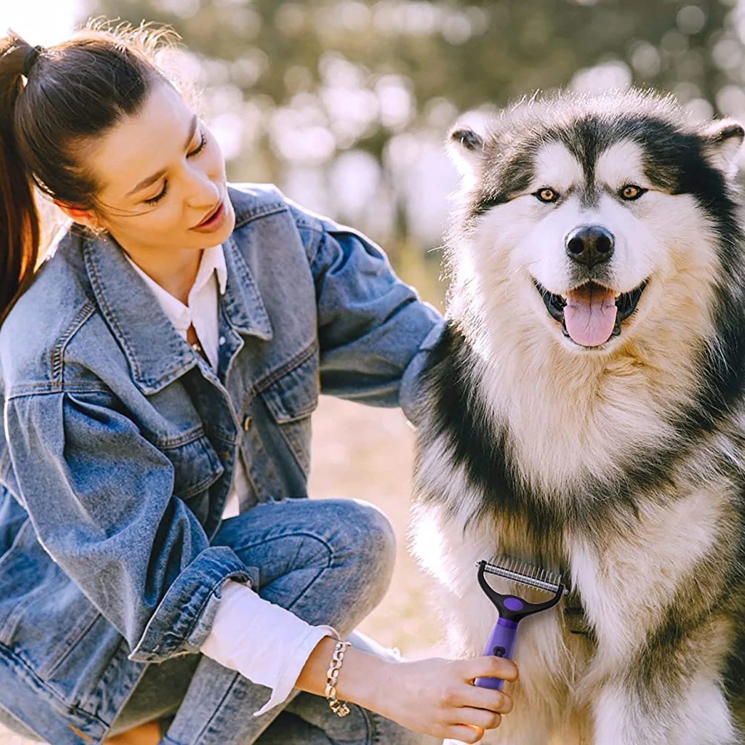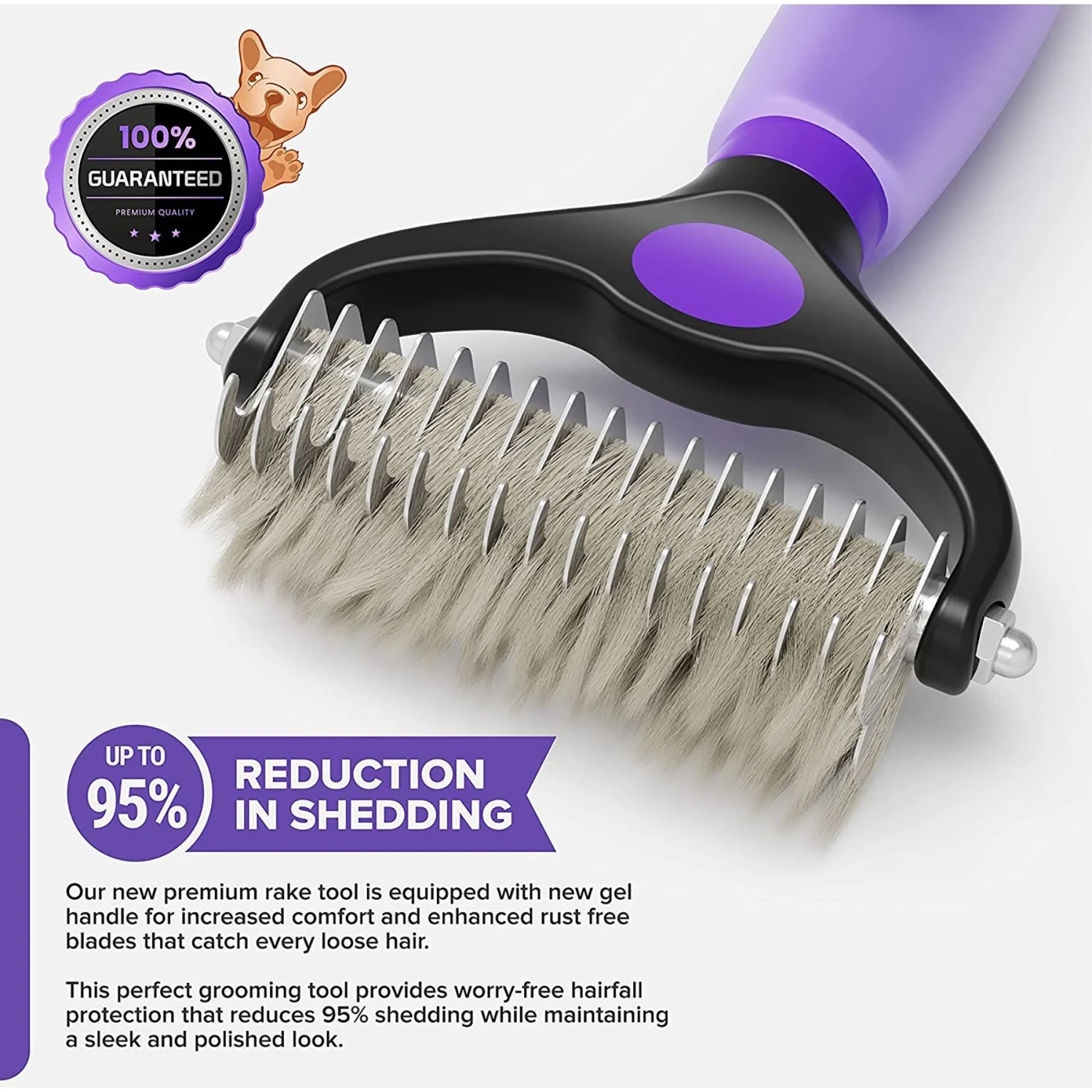 Ruff ‘N Ruffus Upgraded Gel-Handle Double-Sided Rake Brush For Dogs, Purple