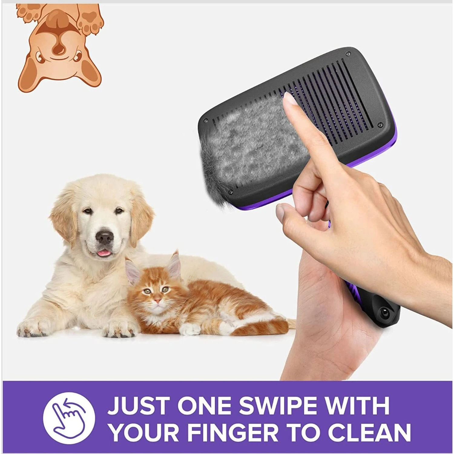 Ruff ‘N Ruffus Upgraded Self-Cleaning Pet Slicker Brush & Nail Clippers, Purple