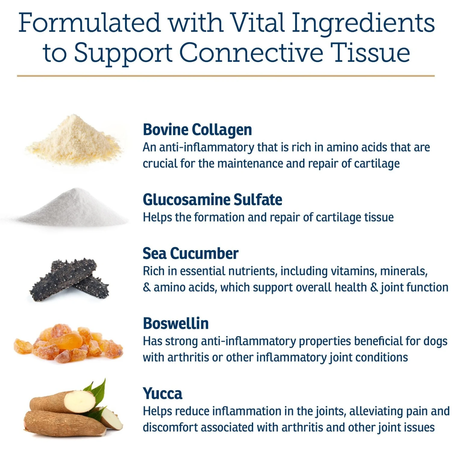 - Features joint-supporting ingredients sea cucumber and glucosamine sulfate.