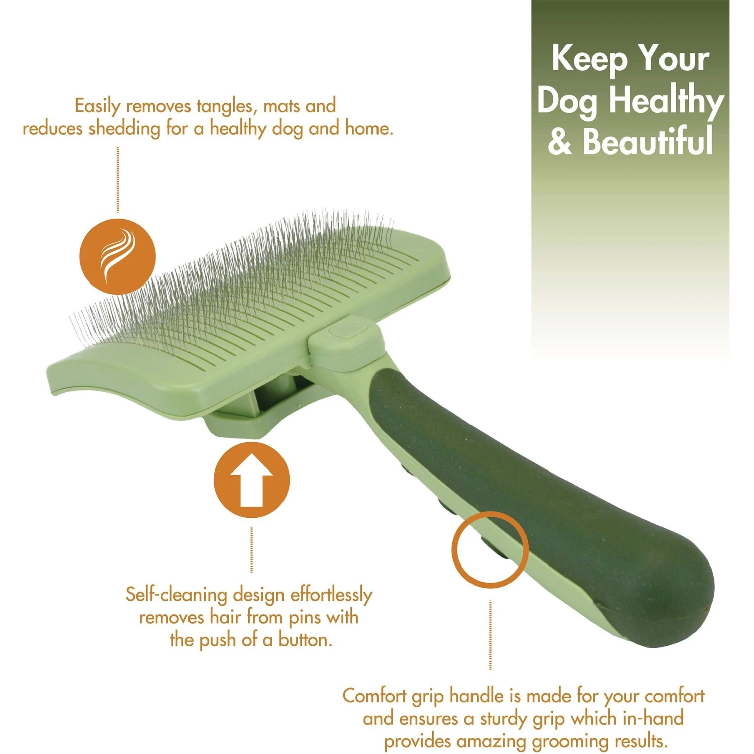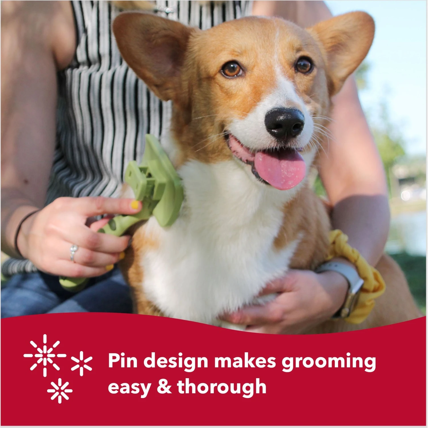 - Pin design easily removes mats, tangles and loose hair from your dog’s coat.
